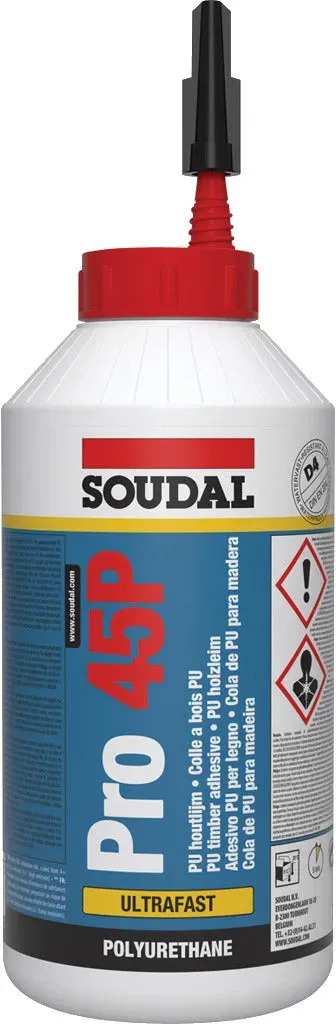 Soudal 45p META PreisvergleichMit dem Meta-Preisvergleich suchen Sie gleichzeitig bei den großen Preisvergleich Portalen!Jetzt live Suche nach soudal 45p starten! Soudal 45p KaufberatungDer Soudal PRO 45P ist ein schnellhärtender, wasserfester Holzleim auf Polyurethanbasis mit der Wasserfestigkeitsklasse D4 (nach DIN EN 204). Er eignet sich besonders für die Verleimung von feuchten Holzsorten und Holzwerkstoffen, z. B. bei der Herstellung von Schichtholz, Türelementen, Trennwänden und Sandwichpaneelen[1][2][3]. Wichtige Produktmerkmale sind:
