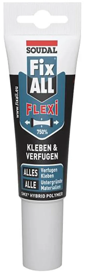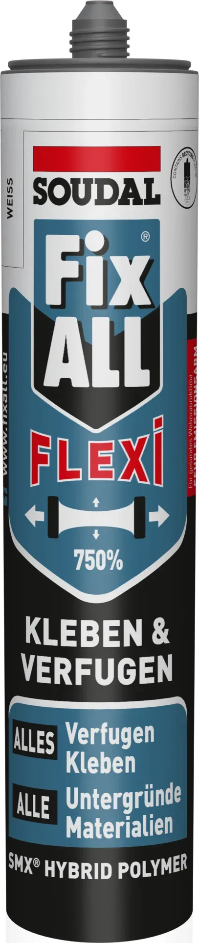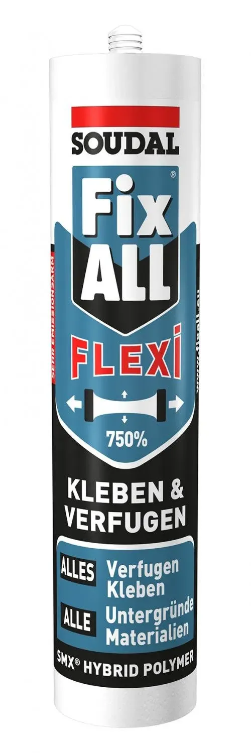 3 Händlerangebote bei billiger.de - Kategorie: Baumaterial - SOUDAL - Fix All Flexi ist ein einziges Produkt für alle Anwendungen im Bereich Kleben und Verfugen. Fix All Flexi bleibt hoch flexibel und passt sich den Bewegungen der eingesetzten Materialien an. Er ist direkt überstreichbar und dauerhaft elastisch. Fix All Flexi ist geeignet für alle Fugen im Sanitärbereich, für Bau und Fassade sowie im Garten- und Landschaftsbau (Geprüft nach DIN EN 18651). - GTIN:5411183137325 Ein gutes Preis-Leistungs-Verhältnis für eine einzelne Kartusche in Weiß, die vielseitig einsetzbar ist. ![]() ![]() SOUDAL Fix All Flexi - Hochflexibler Klebstoff-Dichtstoff auf Polymerbasis für den Innen- und Außenbereich.