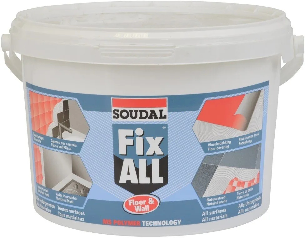 2 Händlerangebote bei billiger.de - Kategorie: Dildos - SOUDAL - Soudal Fix All Floor & Wall ist ein Flächenkleber zur Verklebung von Holz, Stein, Metall und diversen Kunststoffen, bei denen eine großflächige Verarbeitung erforderlich ist. Die Applikation kann z. B. mit einem Zahnspachtel erfolgen. Der Eimer ist wiederverschließbar. - GTIN:5411183093379 ![]() ![]() Soudal Fix - ALL Floor eBay & Wall 4 kg Flächenkleber Kleber Wand Boden