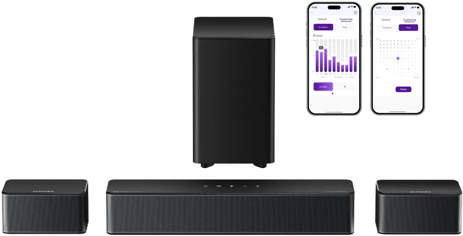 Verfügbarkeit: Auf Lager - Kategorie: Surround-Systeme - ultimea - GTIN:4262533460805 - Erleben Sie ein intensiveres Klangerlebnis: Der Poseidon D60 mit Dolby Atmos bietet eine noch realistischere dreidimensionale Klanglandschaft als herkömmliche Systeme. Erleben Sie einen Klang, der sich frei in einem 3D-Raum bewegt und ein tieferes Eintauchen in die Geschichte ermöglicht. Kristallklarer Dialog und 3D-Surround-Sound: Die Soundbar verfügt über drei Hauptklangkanäle, zwei Surround-Lautsprecher und einen Subwoofer für echtes 5.1 Surround Sound. Dank der Dolby Atmos-Technologie wird die Klangquelle präzise lokalisiert und umhüllt Sie aus allen Blickwinkeln. Anpassbarer Surround-Sound: Die zwei Surround-Lautsprecher haben ein 6-Meter-Verlängerungskabel und sind einstellbar gemäß persönlichem Geschmack und Raumaufteilung. Das Ergebnis ist ein individuelles und intensives Klangerlebnis. Erweiterte Dekodierung mit Dolby Atmos: Der Poseidon D60 ist kompatibel mit Blu-ray und Streaming-Diensten wie Netflix und Prime Video. Die BassMAX-Technologie von Ultimea sorgt für tiefe Frequenzen und einen einstellbaren Bass für pulsierenden Sound. Höchste Klangqualität durch HDMI-eARC: Mit HDMI-eARC genießen Sie eine höhere Bandbreite und fortschrittliche Audioübertragungsmöglichkeiten für verlustfreie Klangqualität. Das Poseidon D60 unterstützt die Dekodierung von DTS jedoch nicht. - 169,99 Euro bei Amazon Marketplace CE - gefunden von billiger.de Eine solide Mittelklasse-Option mit Dolby Atmos, kabellosem Subwoofer und hinteren Surround-Lautsprechern für ein immersives Erlebnis. ![]() ULTIMEA Poseidon D60 Soundbar 5.1-Kanal-Heimkino mit Dolby Atmos, kabellosem Subwoofer, hinteren Surround-Lautsprechern, APP-Steuerung