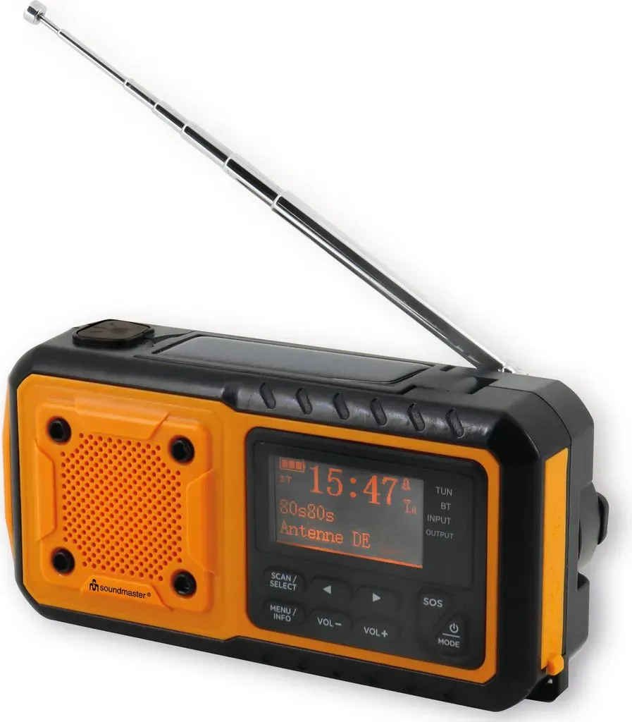 Auf Lager Versand durch AmazonSoundmaster DAB112OR Outdoorradio DAB+, UKW Notfallradio, Bluetooth®, USB Akku-Ladefunktion, Handku