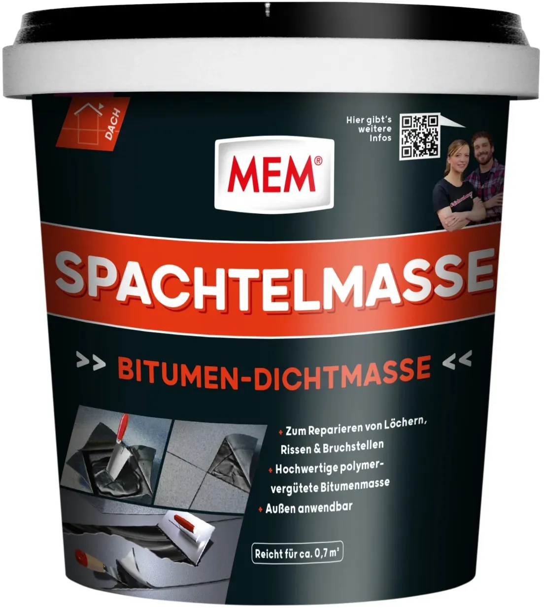 8 Händlerangebote bei billiger.de - Kategorie: Baumaterial - mem - Die MEM Spachtelmasse ist eine hochwertige Dichtmasse zum Reparieren von Rissen und Bruchstellen. Sie zeichnet sich durch vielseitige Anwendungsmöglichkeiten und höchste Qualität aus. Eigenschaften & Anwendungsbereiche Die Dichtmasse ist eine hochwertige, polymervergütete Reparatur- und Spachtelmasse auf Bitumenbasis. Sie eignet sich für die Reparatur von Bitumendachbahnen, Blasen, Löchern, Rissen und Bruchstellen im Außenbereich. Darüber hinaus kann sie zum Ausbessern von Dachkehlen sowie auf waagerechten und senkrechten Flächen eingesetzt werden. Als Untergrund eignen sich Bitumendachbahnen und -beschichtungen, Beton, Putz, Mauerwerk, Estrich oder Metall. Einfache Verarbeitung Für eine wirksame Verarbeitung muss der Untergrund trocken, sauber sowie frei von öl, Fett, Rost und losen Bestandteilen sein. Zudem sind stark saugende Untergründe mit dem MEM Bitumen Voranstrich vorzubehandeln. Die Profi Spachtelmasse kann mit einem Spachtel, einer Kelle oder einer Traufel aufgebracht werden. Zu sanierende Blasen schneiden Sie zunächst auf, während Sie anschließend die Ränder anschmelzen und verspachteln. Folglich kann die Blasse mit der MEM Spachtelmasse überspachtelt werden, wobei Sie die Spachtelmasse an den Rändern flach auslaufen lassen können. Technische Details - Inhalt: 1 kg - Form: Pastös - Farbe: Schwarz - Verbrauch: Ca. 1,4 kg/m2 (pro 1 mm Schichtstärke) - Dichte: Ca. 1,5 g/cm3 - Verarbeitungstemperatur: ... Dieser Decotric Feinspachtel ist speziell für Holz und Lack im Innenbereich geeignet und sorgt für glatte Oberflächen. ![]() ![]() decotric Feinspachtel Spachtelmasse für Holz und Lack für innen 400g
