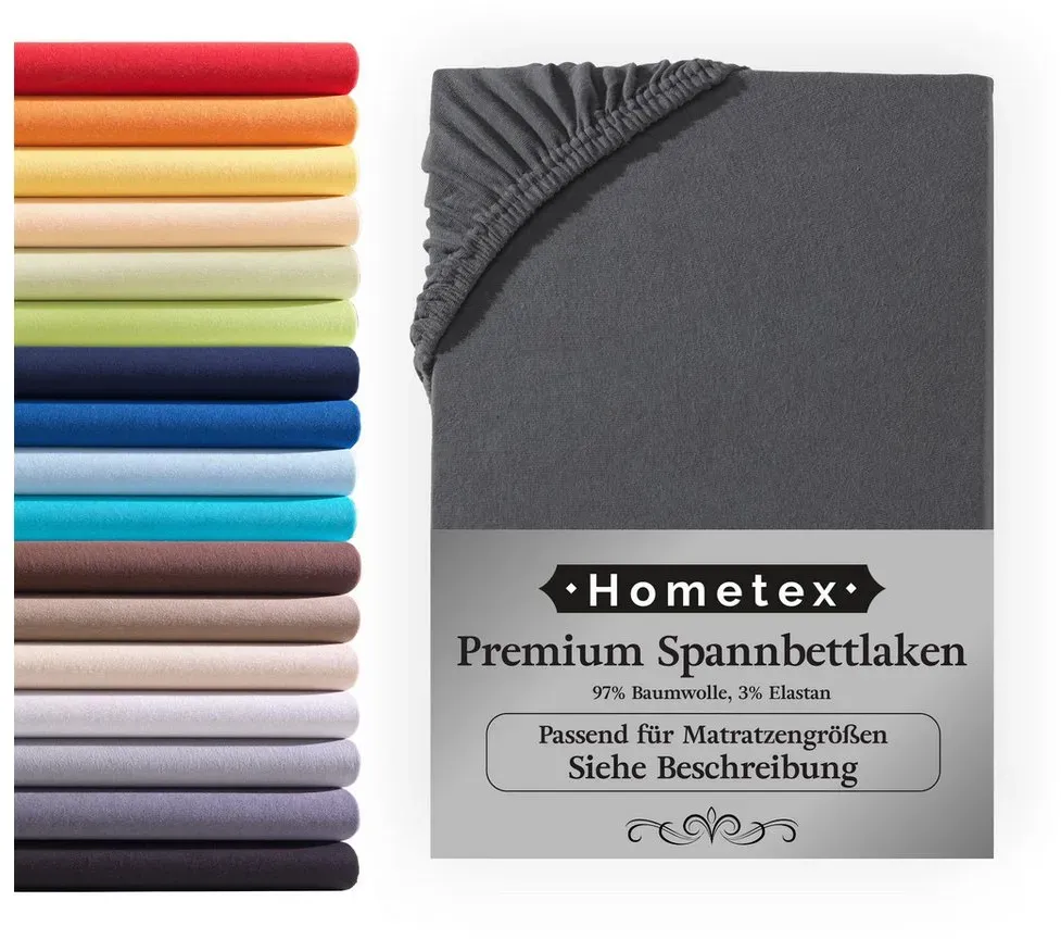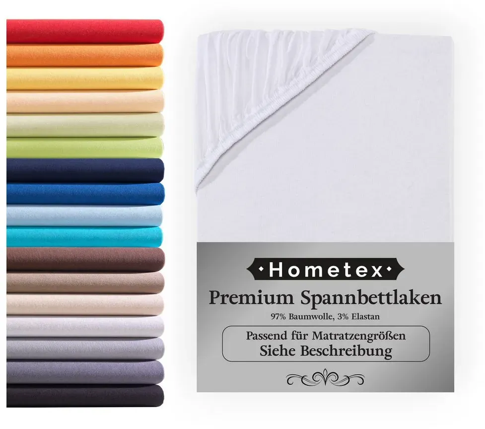 Kategorie: Bettlaken - Blumtal - GTIN:4260514535177 - PREMIUM QUALITäT: Unsere Blumtal Spannbettlaken entsprechen höchsten Qualitätsstandards und sind gemäß OEKO-TEX Zertifizierung auf Schadstoffe geprüft. Unsere Leintücher sind somit sicher für Deine Haut. 100% BAUMWOLLE: Unsere Premium Spannbetttücher aus reiner Baumwolle sind atmungsaktiv und absorbieren Feuchtigkeit in der Nacht. Der Jersey-Stoff ist schnelltrocknend, hoch strapazierfähig und angenehm weich. OPTIMALE PASSFORM: Wir bieten Spannbetttücher für Standard-Matratzen, für Topper und für Boxspringbetten. Unsere Spannbettlaken sitzen passgenau und verrutschen nicht, dank besonders fester Gummizüge. FUSSEL- UND FALTENFREI: Durch eine spezielle Veredelungstechnik unseres Jersey-Stoffes werfen unsere Bettlaken kaum Falten und sind fusselfrei. Die hochwertige Qualität des Stoffes sorgt für Langlebigkeit. PFLEGELEICHT: Unsere Spannbettlaken lassen sich bequem bei 60 C in der Waschmaschine reinigen und im Trockner trocknen. So kannst Du auch starke Verschmutzungen problemlos und schnell entfernen. - 32,99 Euro bei Amazon Marketplace Home - gefunden von billiger.de Ein weiteres hochwertiges Hometex Premium Textiles Spannbettlaken, das sich durch seine 190 g/m2 gekämmte Baumwolle und Eignung für Boxspringbetten auszeichnet. ![]() ![]()