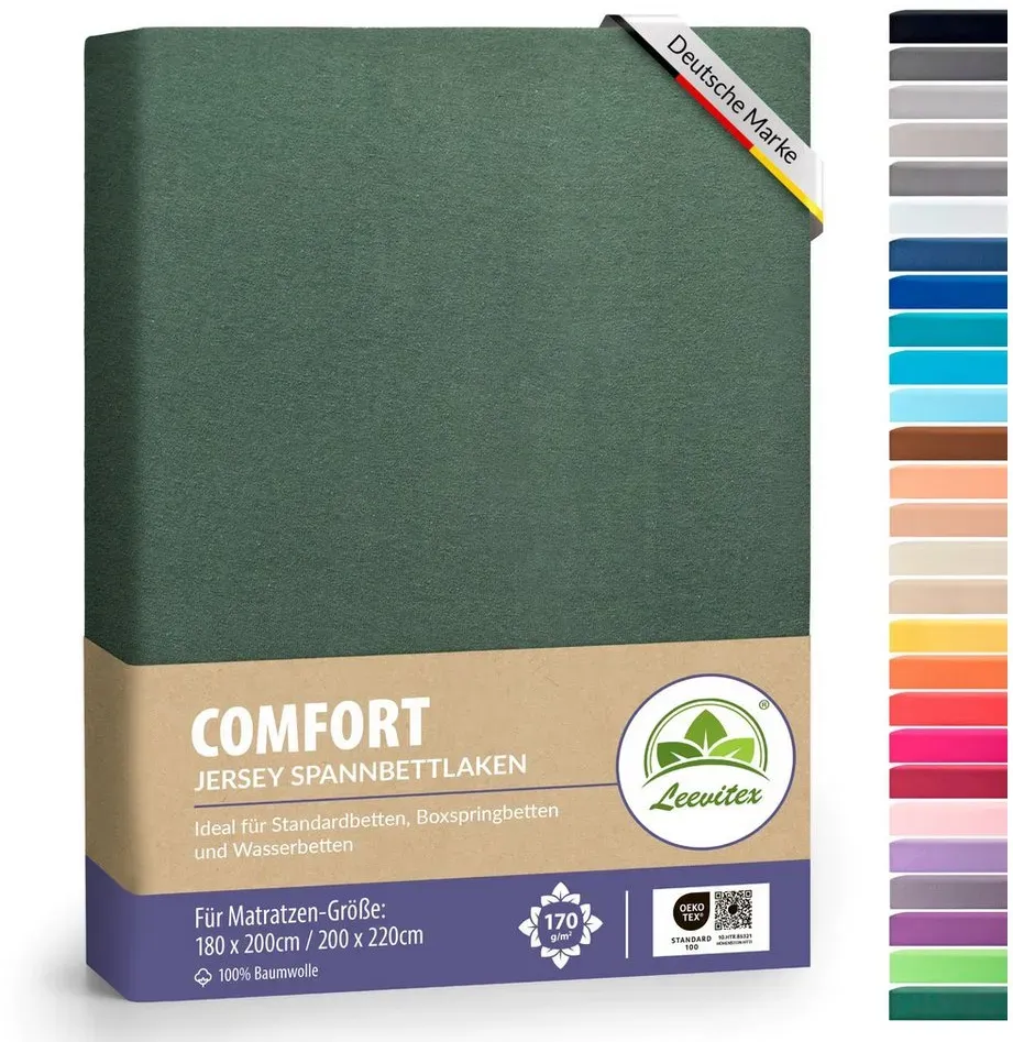 lieferbar-in 2-3 Werktagen bei dirleevitex Spannbettlaken Spannbettlaken Premium 170g/m2, Gummizug: rundum, schwer und dick, 100% Jersey-Baumwolle, auch Boxspringbett geeignet grün 180 - 200 cm x 200 - 220 cm