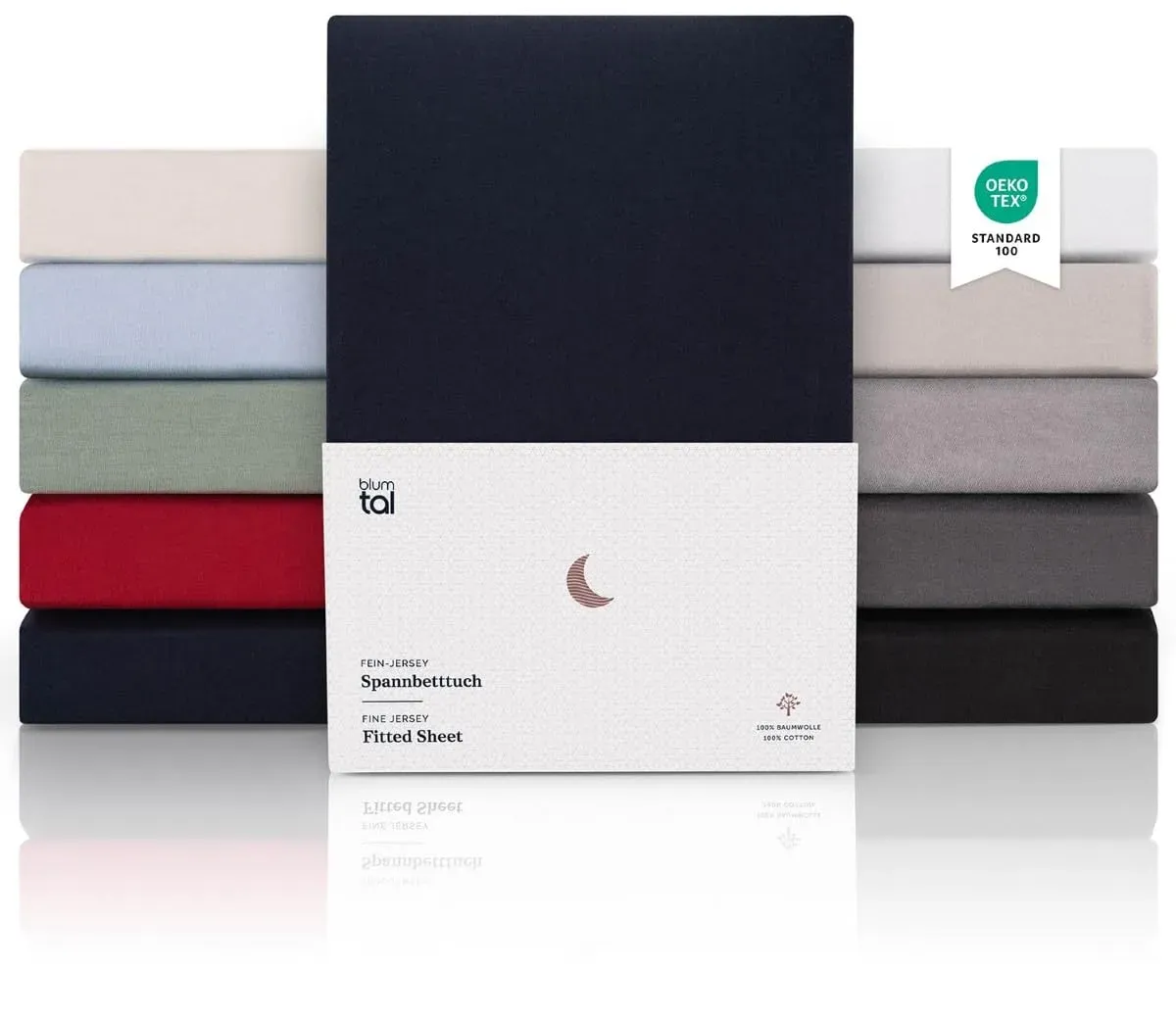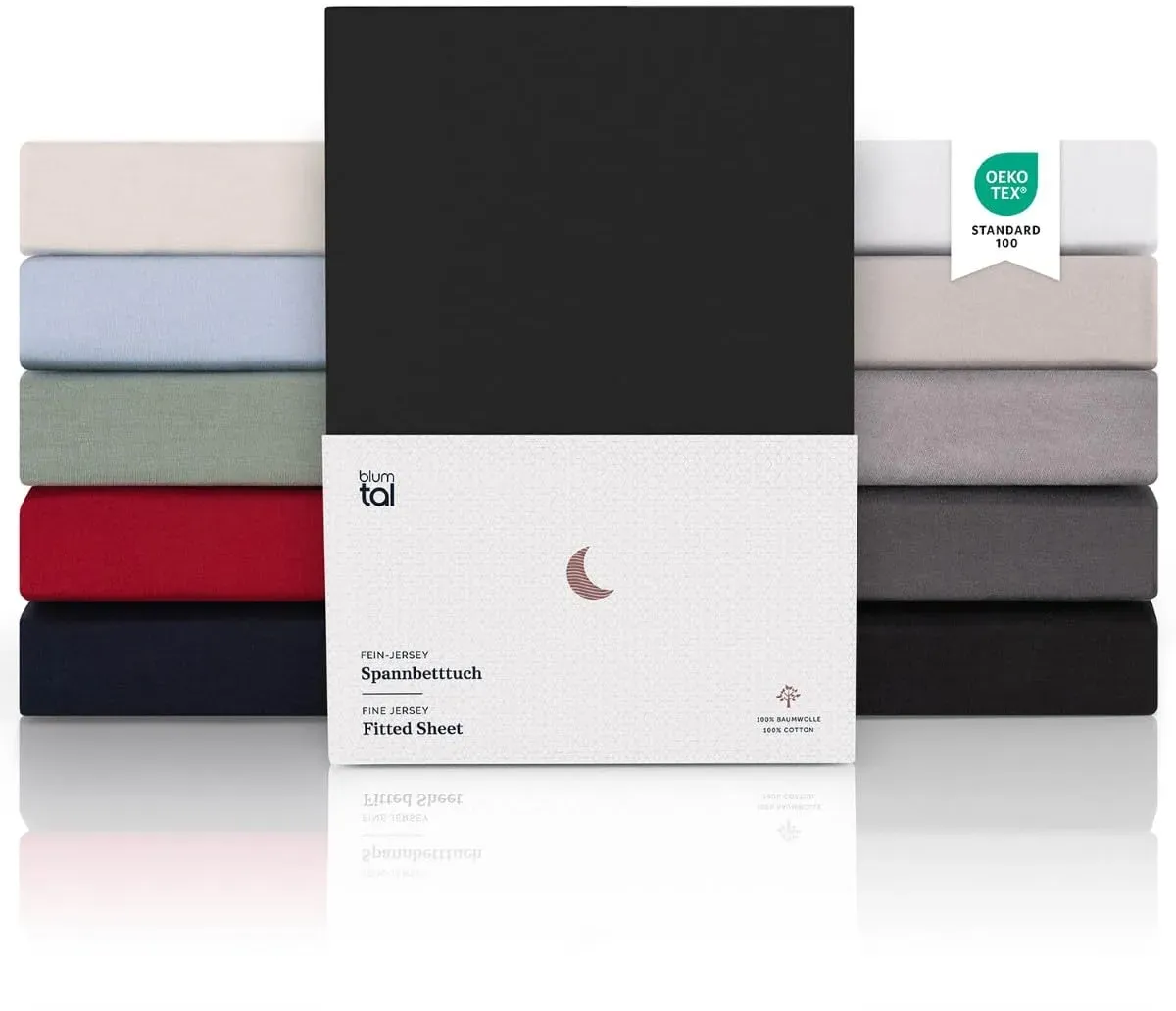 Kategorie: Bettlaken - leevitex - GTIN:4260600428970 - Details Gummizug , rundum, Optik/Stil Optik , unifarben, Farbe , Leinen / Apricot, Maßangaben Breite , 180 - 200 cm, Länge , 200 - 220 cm, Geeignet für Geeignet für Matratzenhöhe , 25 - 40 cm, Geeignet für Matratzengröße , 90 x 200 cm, Geeignet für Matratzenart , Boxspringbetten, Material Materialzusammensetzung , 100% Baumwolle, Flächengewicht , 170.00 g/m2, Pflegehinweis Pflegehinweise , Bis zu 60 C (Farbe Weiß: bis 90 C) in der Waschmaschine waschbar , Wissenswertes Farbhinweise , Bitte beachten Sie, dass die Farben auf Ihrem Monitor von den Originalfarbtönen abweichen können, OEKO-TEX Standard 100 Zertifikatsnummer , 10.HTR.85321, - 23,99 Euro bei OTTO - gefunden von billiger.de Das Blumtal Premium Spannbettlaken im 2er Set bietet ein gutes Preis-Leistungs-Verhältnis für zwei Oeko-TEX zertifizierte Baumwoll-Spannbettlaken. ![]() ![]() Blumtal Premium Spannbettlaken 200x200 cm Jersey 2er Set - Oeko-TEX zertifiziertes Spannbettlaken 200x200 Baumwolle 100% - Bettlaken 200x200 Baumwolle - Spannbettlaken - 200x200 Laken in Schwarz