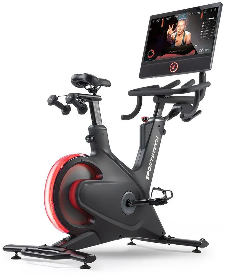 Kategorie: Heimtrainer - Schwinn - GTIN:4895202567743 - Leistungsstarkes Magnetbremssystem für ein leises Training, 100-fache Mikroeinstellung mit Anzeige der Stufen, 18 kg Schwungscheibe Trainingsprogramme: Zeit, Distanz, Kalorienverbrauch, Herzfrequenz Interaktives Training mit Bluetooth Konnektivität, kompatibel mit JRNY, Explore the World, Peloton und Zwift Hochgeschwindigkeits-Antriebssystem, 1000 Watt bei 100 RPM Dual-Pedal-System mit Fußschlaufen und SPD-Klick-System Pulstgurt kompatibel für herzfrequenzgesteuertes Training Tablethalterung für Entertainment während des Trainings, Trinkflaschenhalterungen Max. Benutzergewicht 150 kg Aufbaumaße 124 x 54 x 132 cm (Gewicht 55 kg) Das IC8 Indoor Bike ist weitgehend vormontiert. Lediglich die Bodenrohre und das Sitzrohr mit Sattel sowie die Lenksäule mit Lenker müssen noch montiert werden. - 1199,00 Euro bei Amazon Marketplace Sports - gefunden von billiger.de Das Sportstech Speedbike sBike ist ein Premium-Modell mit 21,5" Touch-Display und LED-Feedback für ein immersives Trainingserlebnis. ![]() ![]()