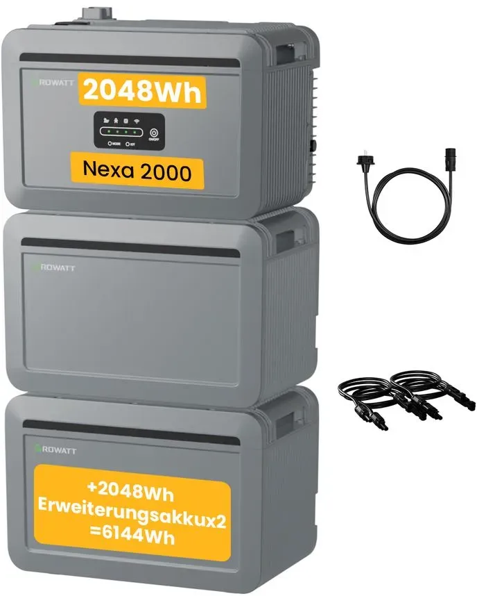 Gewöhnlich versandfertig in 2 bis 3 Tagenpowerness Balkonkraftwerk Speicher Growatt NEXA 2000 Speicher All-in-One 2048Wh Speicher für Balkonkraftwerke (2048Wh Erweiterungsakku*1)