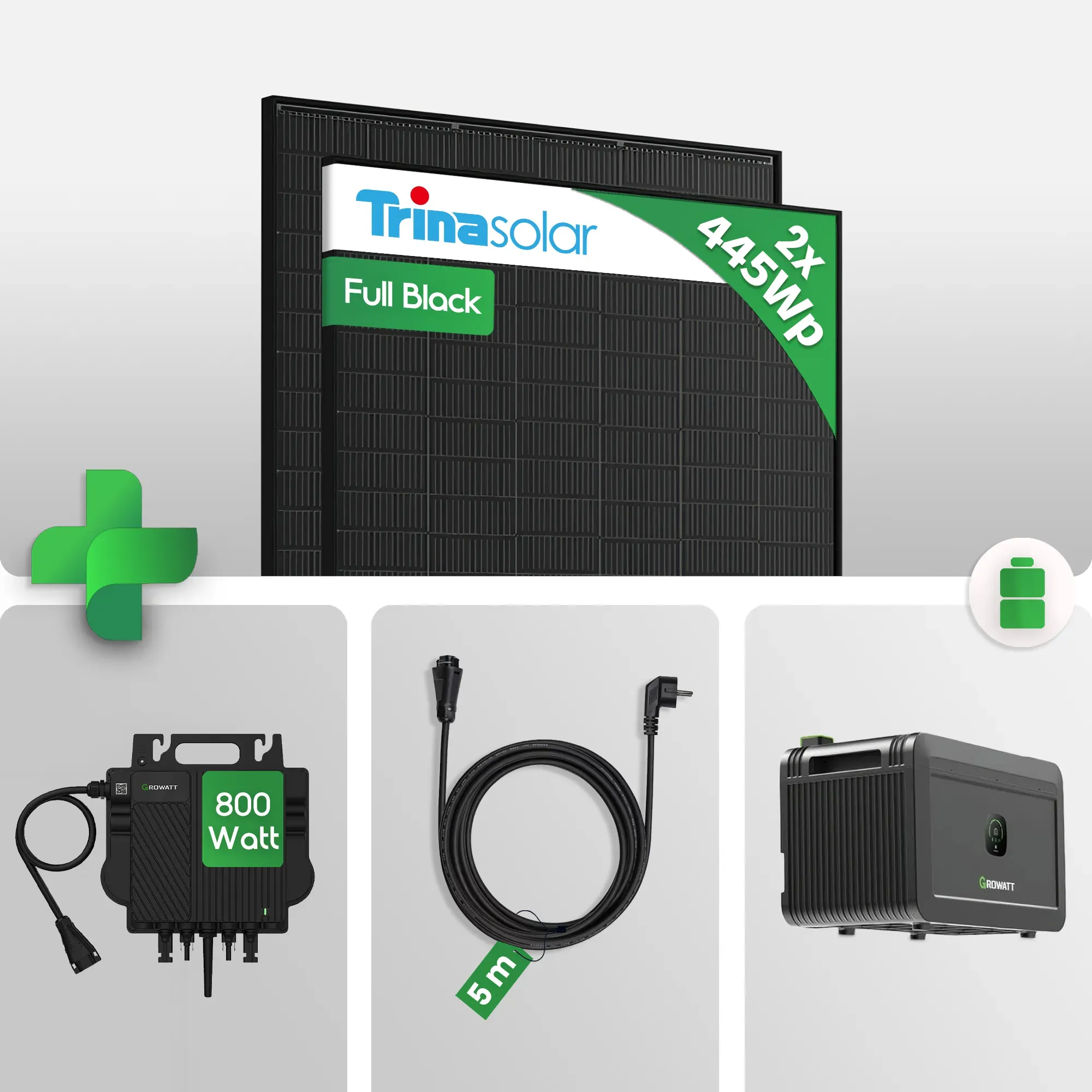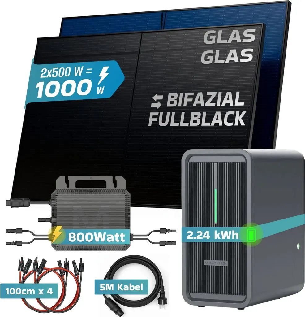 16 Händlerangebote bei billiger.de - Kategorie: Solaranlagen - Felicity - 2000W Balkonkraftwerk-Set (2640Wp) €“ JA Solar 445W ×6, EZHI Hybrid, APsystems EZ1-M & 5,12 kWh LUX LiFePO4 Speicher Das 2000W Balkonkraftwerk-Set ist die leistungsstärkste Komplettlösung für autarke Stromversorgung auf dem Balkon, Dach, Gartenhaus oder Carport. Ausgestattet mit sechs JA Solar 445W JAM54D41 LB Modulen (gesamt 2640Wp), dem intelligenten EZHI Hybrid-Mikrowechselrichter , dem bewährten APsystems EZ1-M Mikrowechselrichter sowie dem LUX-E-48100LG04 LiFePO4 Speicher mit 5,12 kWh liefert dieses Set maximale Energieausbeute und Unabhängigkeit vom Netz. Die hocheffizienten Solarmodule mit bifazialer N-Typ-Technologie erzeugen selbst bei diffusem Licht stabile Leistungen. Die beiden Wechselrichter regeln nicht nur die Einspeisung und Speicherung, sondern bieten zusätzlich eine EPS-Funktion zur Notstromversorgung bei Netzausfall. Via WLAN, Bluetooth und App hast du jederzeit volle Kontrolle über dein System €“ vom Energiefluss bis zur Speicherladung. Mit seiner einfachen Plug-and-Play-Installation ist dieses System ideal für anspruchsvolle Nutzer, die ihren Eigenverbrauch maximieren, Stromkosten senken und einen Beitrag zur Energiewende leisten wollen €“ sicher, effizient und wartungsfrei. Nulleinspeisung €“ Erklärung und Einrichtung Bei der Nulleinspeisung wird der erzeugte Solarstrom ausschließlich im eigenen Haushalt genutzt €“ entweder direkt durch Verbraucher oder zur ... Dieses Balkonkraftwerk mit 890W und 2 kWh Speicher für 700 Euro ist eine effiziente Lösung für die Grundlastabdeckung. ![]() ![]() 890W Balkonkraftwerk mit Speicher 2 kWh | Growatt NEO 800W WiFi | Mini PV Anlage Steckdose | Full Black Solarmodule