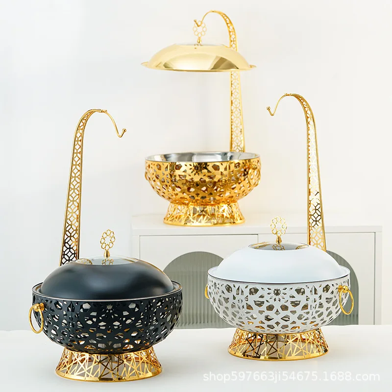 Kategorie: Großküchentechnik - Royal Catering - GTIN:4062859090416 - leistungsstark – mit einer Leistung von 600 W vielseitig – dank 6 GN-Behältern können verschiedene Speisen gleichzeitig angeboten werden sicher – schonendes Warmhalten der Speisen im Wasserbad verhindert ein Anbrennen hygienisch – leicht zu reinigen dank glatter Oberflächen aus Edelstahl langlebig – hochwertige Verarbeitung und robuste Materialien - 147,00 Euro bei Amazon Marketplace Kitchen - gefunden von billiger.de Ein luxuriöses Chafing Dish Set mit hängendem Deckel, das sich besonders für Hochzeiten und gehobene Buffets anbietet. ![]() Chafer Buffetöfen Speisenwärmer-Set aus Edelstahl, luxuriöse Chaffing Dish mit hängendem Deckel zum Hochzeit aus Edelstahl