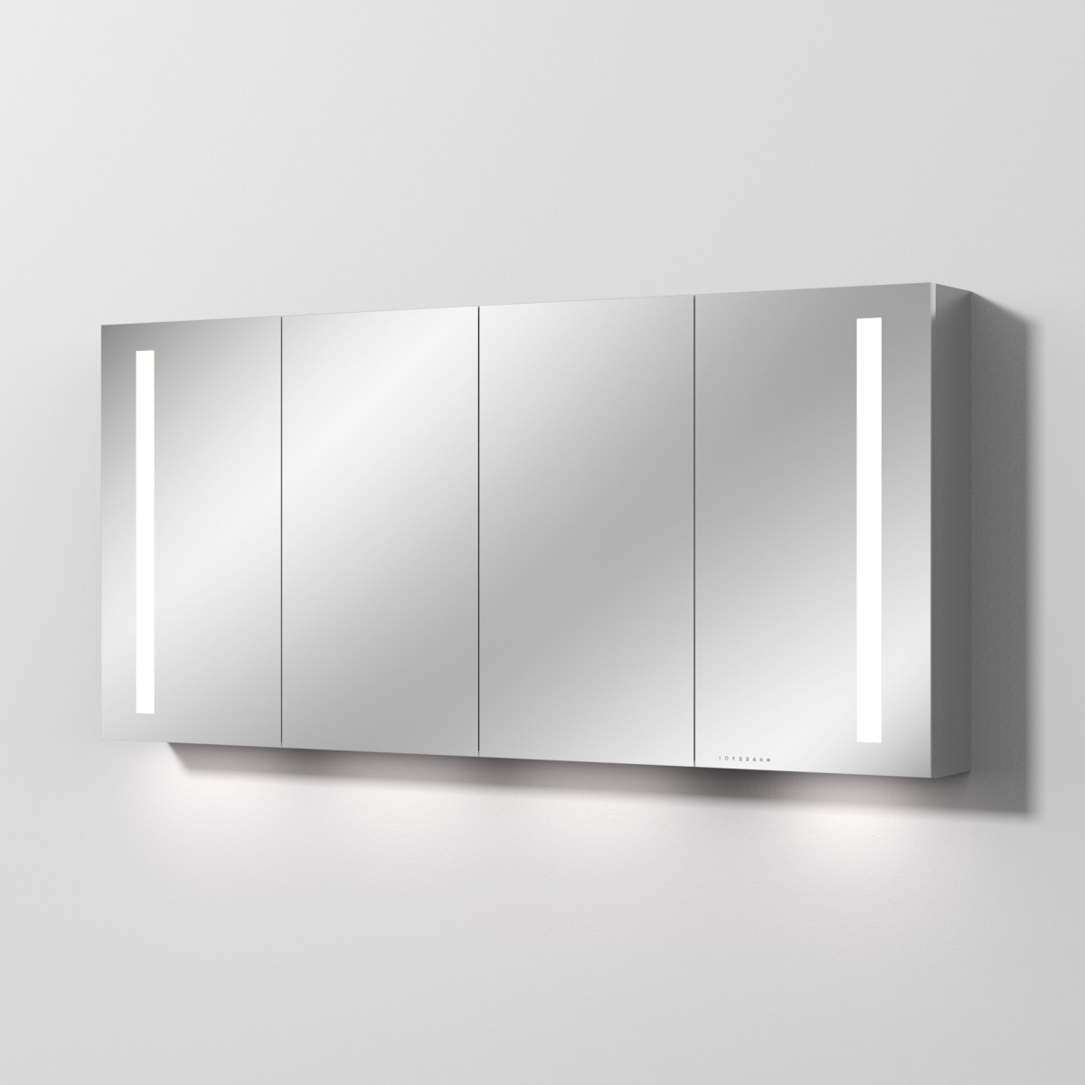 Spiegel mit Lichtern Spiegel Lichtfarbe tageslichtweiß 5300 Kelvin - EAN:4063382460837 - Eigenschaften:LED-Lichtfeld oben und indirekte Beleuchtung oben und untenLED Leistung: 22 Watt (langlebig und energiesparend)Lichtfarbe: 2700 - 6500 KLeuchtmittel nicht austauschbarmit integrierter Dimmfunktion: kann für angenehme Lichtstimmung individuell angepasst werdeninkl. Spiegelheizung 2x 37 W (40 x 40 cm, 1x links, 1x rechts) mit automatischer Abschaltungberührungsloses Bedienfeld frontseitig mit 3 vertikal angeordneten IconsIcon 1 (oben): An/Aus inkl. Dimmfunktion für Lichtfeld obenIcon 2 (mittig): An/Aus inkl. Dimmfunktion für indirektes Licht oben und untenIcon 3 (unten): An/Aus für Spiegelheizung inkl. Auto-Off nach 60 minIcon 1 und Icon 2 zusammen betätigen und halten: stufenloser Wechsel der LichtfarbeEinstellung der Lichtfarbe mit Memory-FunktionEin/Aus Funktion auch über bauseitigen Taster möglichEnergieeffizienzklasse: ESchutzart: IP 44komplett vormontiert und eingestelltUnempfindlich gegen Feuchtigkeit: keine offenen Kanten zum Schutz vor Wasser und hoher Luftfeuchtigkeit100 % Qualität: in sorgfältiger Handarbeit und mit modernster Technik komplett in Deutschland gefertigt, für höchste Qualitätsansprüche - gefunden von Kelkoo Dieser Sanipa Aluminium-Spiegelschrank bietet eine hochwertige Verarbeitung und integrierte LED-Beleuchtung für anspruchsvolle Bäder. ![]() Sanipa Reflection Aluminium-Spiegelschrank ALEX 160 mit LED-Beleuchtung, AU4206L AU4206L