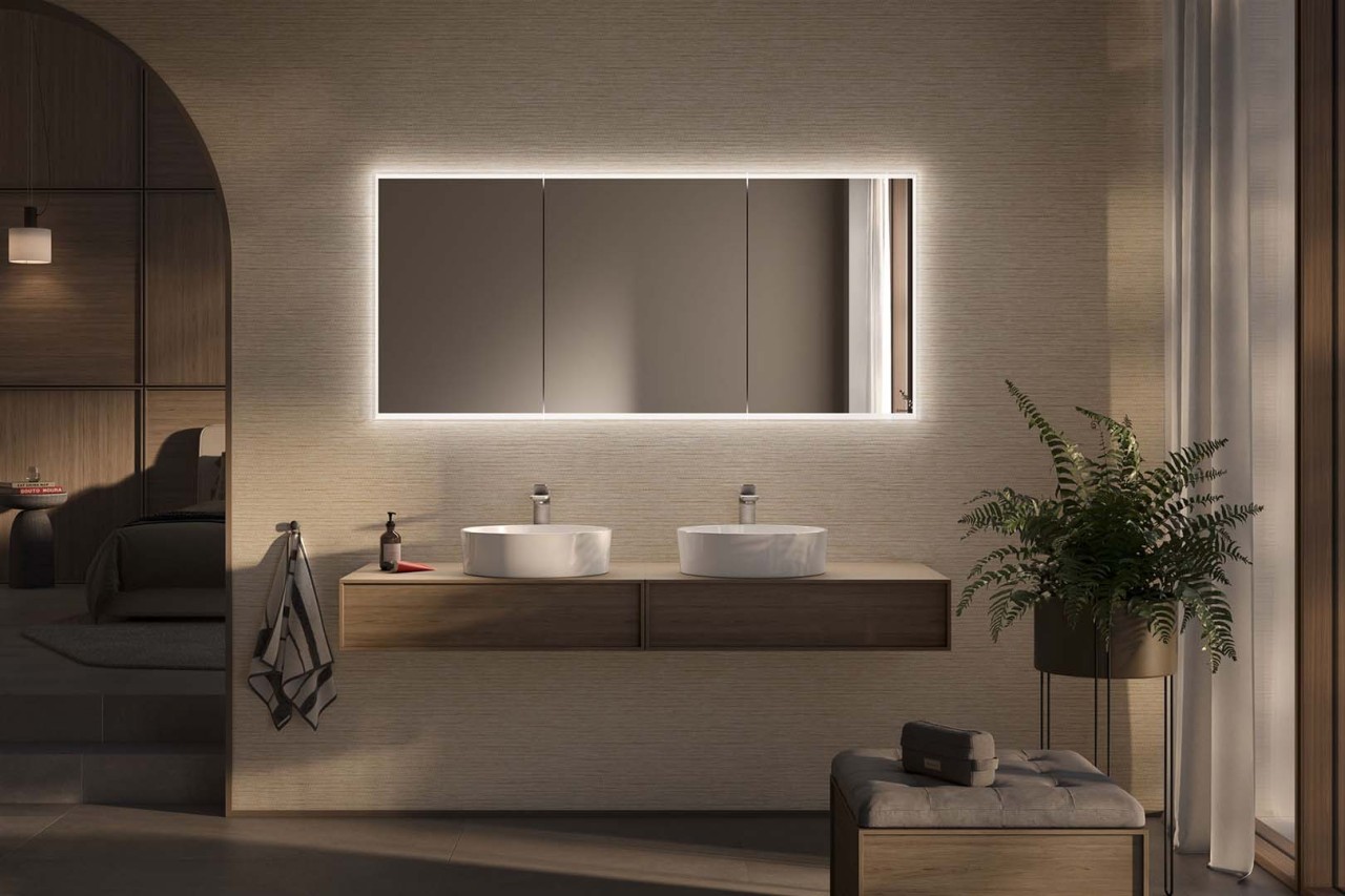 ca. 3-5 Wochen in_stockburgbad Lin20 Spiegel mit LED-Beleuchtung und Spiegelheizung - 160 cm breite Variante