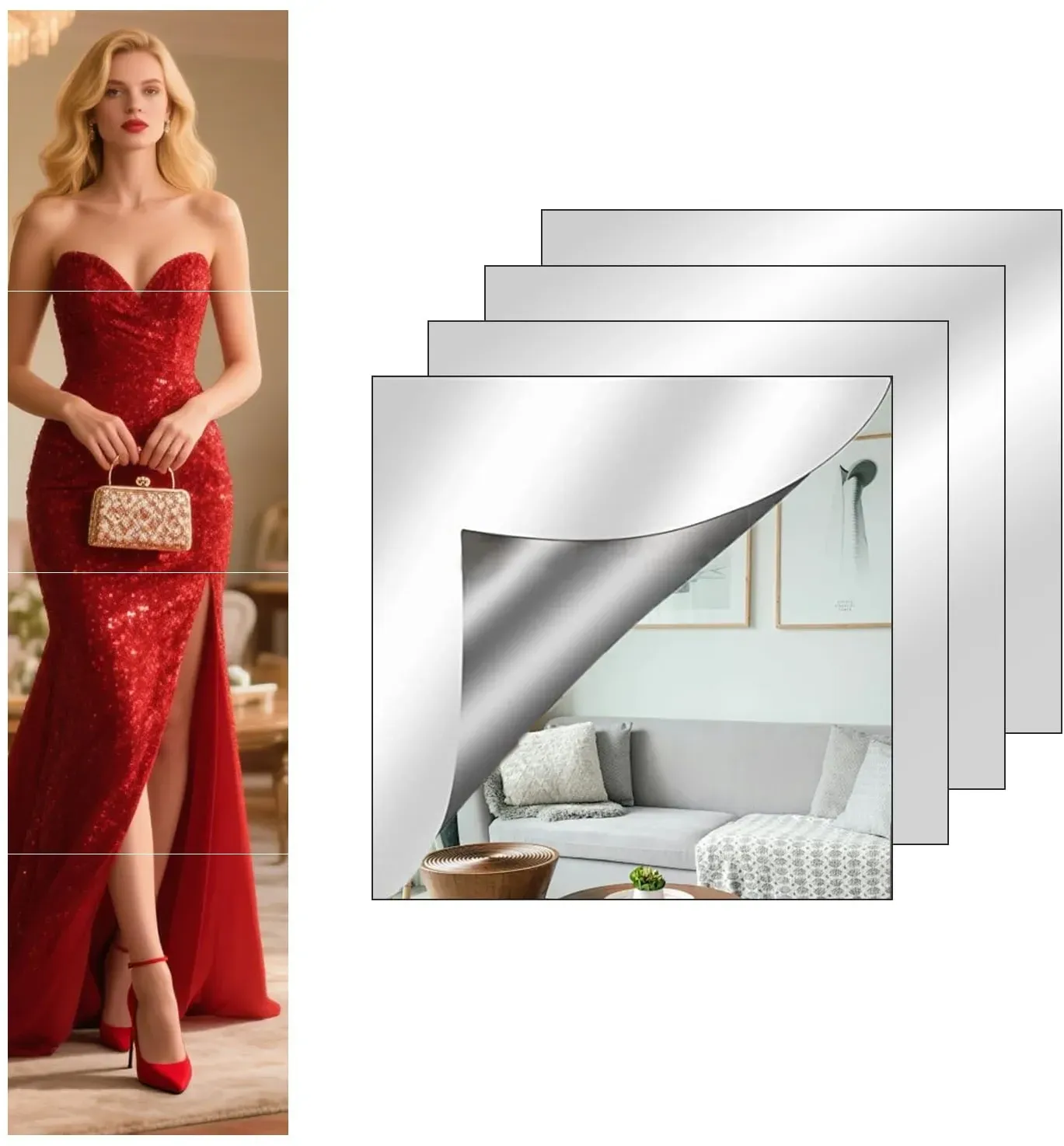 Kategorie: Spiegel - vernerth - GTIN:0787353267556 - Leicht und Bruchsicher Unsere spiegelfolie selbstklebend besteht aus hochwertigem 2 mm dickem Acrylmaterial: leicht, flexibel und unzerbrechlich die sichere Alternative zu echtem Glas, ideal für Familien mit Kindern. Vielseitige Größe & Kombinierbar Jeder Klebespiegel misst 30x30 cm perfekt zum kreativen Anordnen. Sie erhalten 4 Stück, die Sie individuell zu Mustern oder Mosaiken zusammensetzen können schaffen Sie Ihr eigenes Deko-Highlight! Optische Raumvergrößerung Die spiegelfolie reflektiert Licht und lässt Räume größer und heller wirken. Besonders praktisch für kleine Räume, dunkle Flure oder als dekoratives Element in Ihrem Zuhause. Einfache Selbstmontage Kein Bohren, kein Werkzeug: Ziehen Sie einfach die Schutzfolie ab und kleben Sie den Klebespiegel selbstklebend auf eine saubere, glatte Oberfläche. Ideal für Wände, Schränke, Türen oder Fliesen. Ideal für viele Räume Ob Badezimmer, Wohnzimmer, Schlafzimmer, Küche oder Büro unsere selbstklebende Spiegelfolie ist universell einsetzbar. Auch perfekt für Schränke oder Umkleidezimmer geeignet. - 11,99 Euro bei Amazon Marketplace Home - gefunden von billiger.de Eine flexible und selbstklebende Spiegelfolie, die sich gut für Möbel und Wände eignet und eine Alternative zu Glas darstellt. ![]() ![]() Stickyart Spiegelfolie Selbstklebend Möbel für Wand & Schrank 30x200cm Flexibel Spiegel Aufkleber Dekofolie Möbelfolie Selbstklebend Silber Nicht Glas und Raumgestaltung Spiegelfolie Wandspiegelfolie