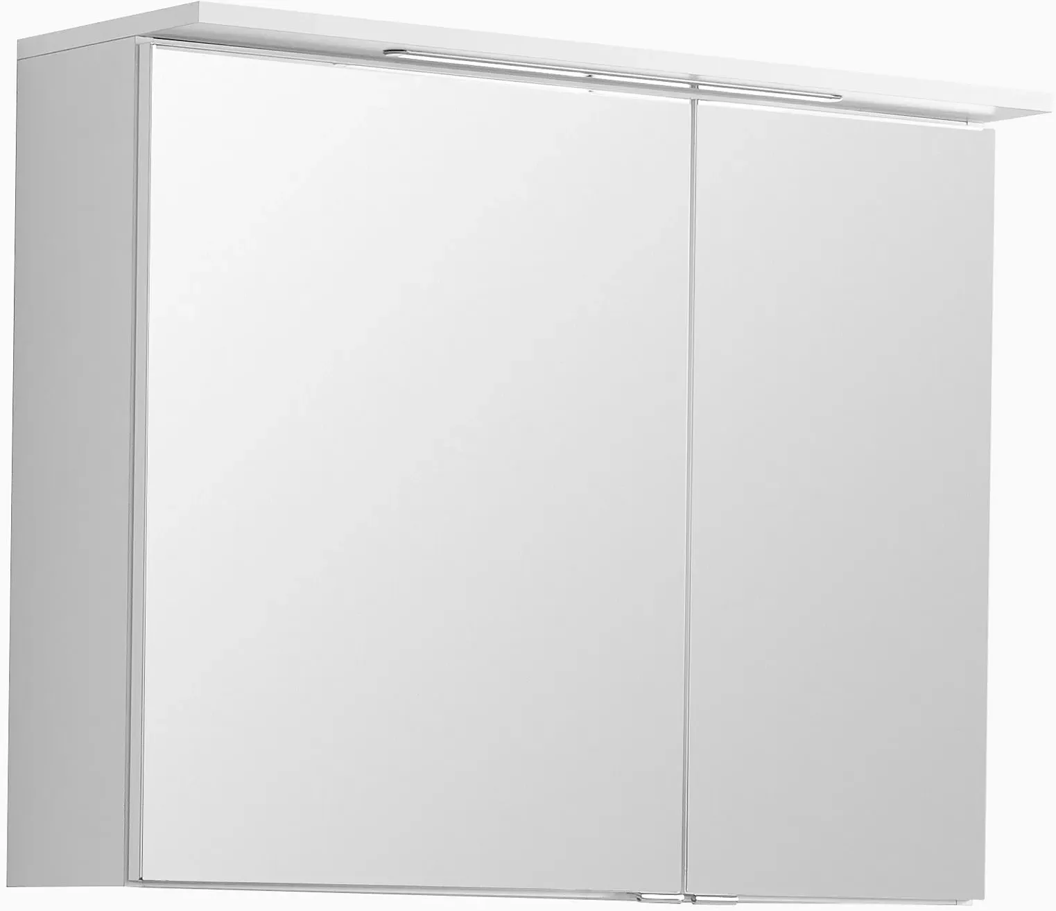 Zustand: Neu - Spiegelschränke Spiegelschränke fürs Bad - Schildmeyer - 141880 - EAN: 4027181106808 - Spiegelschrank mit drei Türen, einem offenen Fach und drei Einlegeböden inkl. LED-Aufbauleuchte (Länge ca. 30,8 cm, 5700 Kelvin, 562 Lumen, Energieeffizienzklasse A+) und Schalter-/Steckdoseneinheit Scharniere mit hochwertiger Softclose-Technik Fachinnenmaß: ca. 76,8 x 14,0 x 12,5 cm (B/T/H) Hergestellt in Deutschland - bei Amazon.de ![]() Held-Möbel Spiegelschrank Weiß, Transparent 80 Move