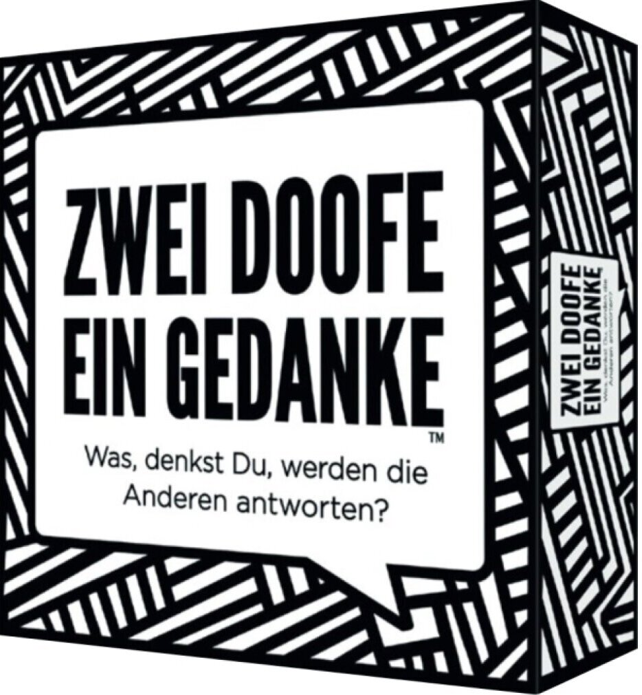 Pegasus - EAN: 7331672430202 - Zwei Doofe ein Gedanke ist ein mitreißendes Spiel mit hohem Funfaktor. Dabei muss jeder Spieler versuchen dieselbe Antwort abzugeben wie die anderen Spieler. Je mehr Spieler so wie Du geantwortet haben, desto mehr Punkte erhältst Du. Der Spieler, der am Zug ist, liest die Frage laut vor und lässt jeden ein wenig darüber nachdenken und zählt dann runter 3, 2, 1... dann antworten alle gleichzeitig im Chor. Mach Dich gefasst auf jede Menge Spaß, komplett falsche Einschätzungen und lustige Antworten! Zwei Doofe ein Gedanke ist ein verrücktes, temporeiches und super lustiges Spiel mit 440 Themen. Ein ideales Geschenk und Mitbringsel für jede Gelegenheit, lustige Partys und gesellige Abende! - bei voelkner.de - aus Yadore Produktdaten ![]() ![]() Kylskapspoesi Zwei Doofe ein Gedanke / Pegasus Spiele GmbH / Spiel