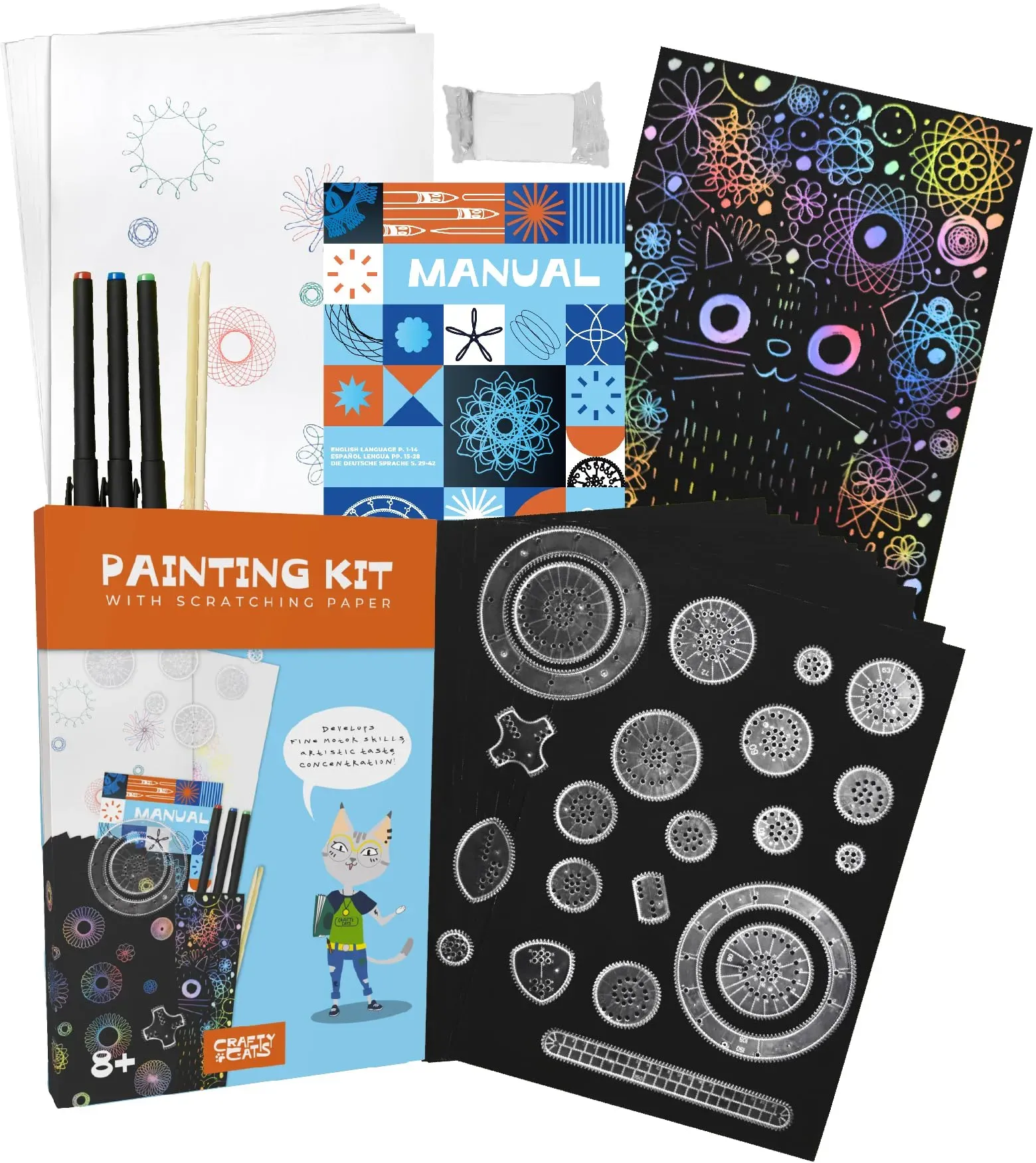 Kategorie: Malen - crafty cats - GTIN:0783385891202 - Zweifach kreativer Bastelspaß Spiralzeichnung trifft Scratch Art: zwei Techniken in einem Set für abwechslungsreiche, fantasievolle Stunden. Einfach & sofort startklar Komplettset mit Spiralring, Stiften, Scratch Tool & Anleitung direkt loslegen, keine Vorbereitung nötig! Für junge KünstlerInnen ab 8 Stimulierend, altersgerecht, fördert Konzentration und Kreativität ideal für Schule, Hobby & Familie. Perfekte Geschenkidee Für Geburtstage, Weihnachten oder kreative Familienzeit: Eltern, Großeltern und DIY Fans lieben das. Jetzt ausprobieren und staunen Inspirierende Ergebnisse in wenigen Schritten sichere Materialien, großer Bastelspaß rt! Spirograph Deluxe Kit 47 Stück Komplett: Das vollständigste Set auf dem Markt mit 4 Präzisions-Zahnrädern, 15 runden Rädern, 2 Führungsringen, speziellem Lineal für einzigartige Muster, ökologischem Bambus-Stift und 100% sicherer Knetmasse zum Fixieren. Diese professionellen zeichenschablonen ermöglichen unendliche geometrische Designs und komplexe mathematische Muster für atemberaubende Spiralkunst. Revolutionäre Scratch Art Technik: Enthält 10 spezielle schwarze A4-Kratzbilder für Scratch Art Technik und 10 weiße Standard A4-Blätter. Mit dem natürlichen Bambus-Stift entdecken Sie brillante Farben unter der schwarzen Oberfläche für spektakuläre geometrische Kunst. Perfekt für geometrie lernen durch kreatives Spiel und entwickelt mathematisches Verständnis auf spielerische Weise. ... Ein umfangreiches 46-teiliges Kreativspielzeug-Set, das für Kinder ab 8 Jahren geeignet ist und viele Gestaltungsmöglichkeiten bietet. ![]() ![]() Spirograph Deluxe - Set 46 eBay Teile Kreativspielzeug Malset Kinder Ab 8 Jahren