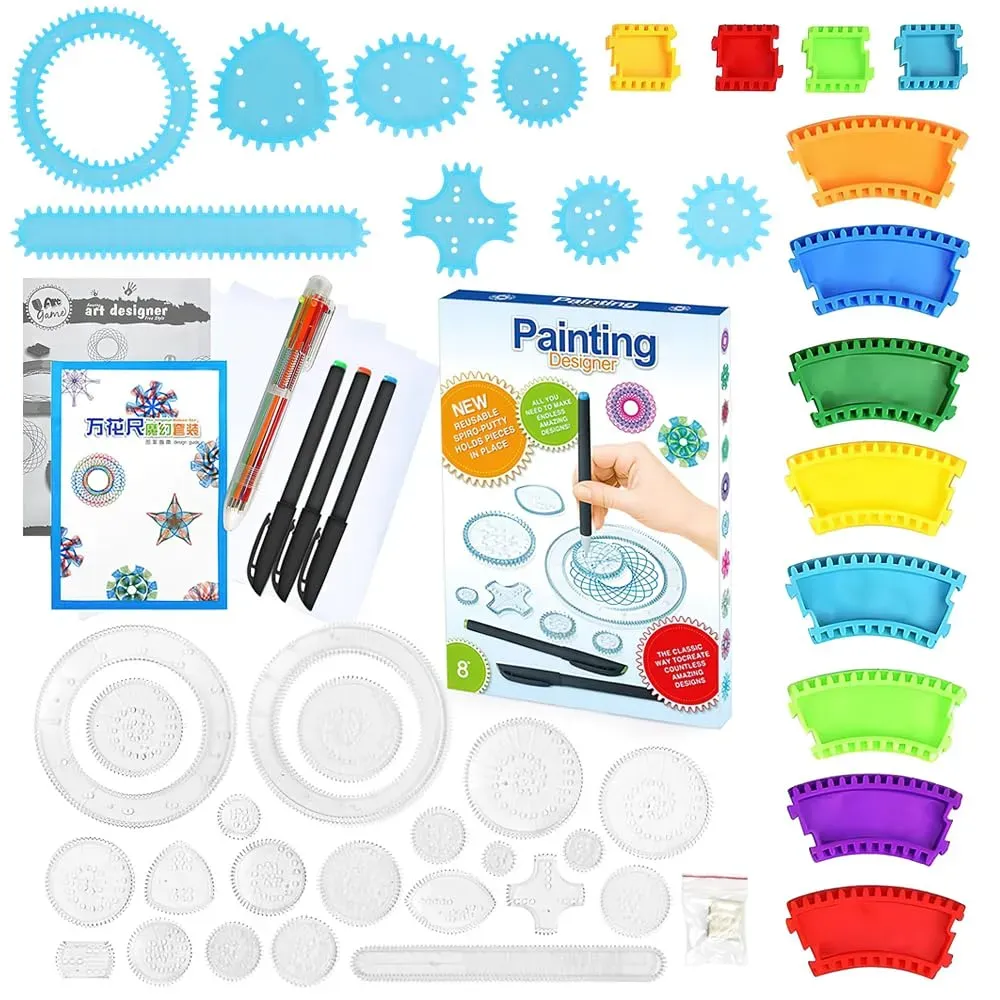Kategorie: Basteln - yangun - Klassisches Spirograph Set Spirograph Kinder enthält 45 Artikel, 22 verschiedene Formen von Zahnrädern, 3 Stifte in verschiedenen Farben, 1 Stift mit 6 Farben, 1 Kleber, Weiße Papiere A4, 1 farbiges Gleis(12 Zubehörteile), 4 blaue Zahnräder und 1 Musteranleitung. Langlebig und Praktisch Die Spirograph Kinder besteht aus hochwertigem Kunststoff, ist sicher und geruchlos, langlebig und hat eine einzigartige Krümmung, Sie können ihn mit Zuversicht verwenden, und sie schneiden klar, haben ein gutes Finish und die richtige Menge an Platz, Sie können einfach durch sie skizzieren. Interesse Wecken Das Spirograph Design Set ist ein sehr praktisches Lernmaterial für Kinder, von Spiralen über herabstürzende Kurven bis hin zu auffälligen Linienmustern. Spirograph Kinder kann die räumliche Vorstellungskraft von Kindern effektiv trainieren, ein breites Spektrum farbenfroher Interessen fördern und Intelligenz entwickeln. Einfach zu benutzen Legen Sie einfach ein Stück Papier zwischen die Zahnräder und Sie können jederzeit mit dem Zeichnen beginnen. Auswechselbare Rahmenteile lassen sich problemlos in verschiedene Formen zusammenbauen. Sehr einfach zu verwendende Zeichnen Anleitung zum Erstellen komplexer Muster und Designs! Spirograph Kinder leicht zu tragen, Sie können jederzeit mit dem Zeichnen beginnen. Perfektes Geschenk Dieses kreative Spirograph Design Set für Mädchen und Jungen verwandelt Kinder in echte Künstler und ermöglicht Kindern den ... Dieses Set ist mit 22 Rädern und 3 Stiften gut ausgestattet und bietet ein gutes Preis-Leistungs-Verhältnis für Kinder und Erwachsene. ![]() ![]() Gobesty Spirograph, Spiral Designer Drawing Spielzeug Set Für Kinder Und Erwachsene, Spirograph Deluxe kit mit 22 Räder und 3 Stiften