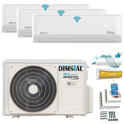 EEK: A++ - Kategorie: Klimaanlagen - Dimstal - GTIN:4260345577544 - Laufruhiger und hocheffizienter Twin-Rotary Kompressor, Self Clean Selbstreinigungsfunktion auf Knopfdruck. Innen und Außeneinheit mit Golden-Fin Lotus-Effekt: immer blitzsauber, über viele Jahre hinweg hohe Leistungsausbeute! Die Spezialbeschichtung verhindert zudem die Ansiedlung von Bakterien und Pilzen auf den Lamellen. Die Luft gesund und frisch und es können keine schlechten Gerüche entstehen, die Leistung der Anlage über viele Jahre hinweg auf höchstem Niveau Kraftvoll und dabei sehr leise und Sparsam. DC Full-Inverter Anlage - Original DIMSTAL - Golden-Fin - Lotuseffekt - Intelligent - Energiesparend - Antibakteriell und Langlebig. Funktioniert mit 230V Haushaltsspannung. Energieeffizienzklasse: Kühlen/Heizen = A++/A+++ DC Full-Inverter: die Arbeitsgeschwindigkeit des Inverter Kompressormotors wird entsprechend der abgefragten Systemkapazität kontinuierlich und stufenlos geregelt. Die Jahresarbeitszahl ist der beste Kennwert um die Qualität einer Wärmepumpe zu bewerten. Dabei werden Werte zwischen 3,5 und 4 als gut angesehen. Diese Anlage hat einen SCOP Wert von 5,1 Schon jetzt vorgefüllt mit moderstem R32. Bei gleichbleibenden Wärmetauscherflächen werden die Leistungszahlen der Anlage deutlich gesteigert. Lieferumfang: 1x TrioSplit Außeneinheit mit Twin-Rotary-Compressor, 3x 9000BTU ECO Smart Inneneinheiten, Wandhalter mit Montagematerial, 3x WiFi Module, 3x Fernbedienungen. Kupferleitungen in ... Die Samsung Cebu S2 Dual-Split-Klimaanlage für 1161.5 Euro ist eine energieeffiziente (A+++) Dual-Split-Lösung für zwei kleinere Räume. Climamarke t.com Samsung Cebu S2 Dual-Split-Klimaanlage 7000+7000 BTU Wechselrichter A+++ WLAN-Außeneinheit 4 kW