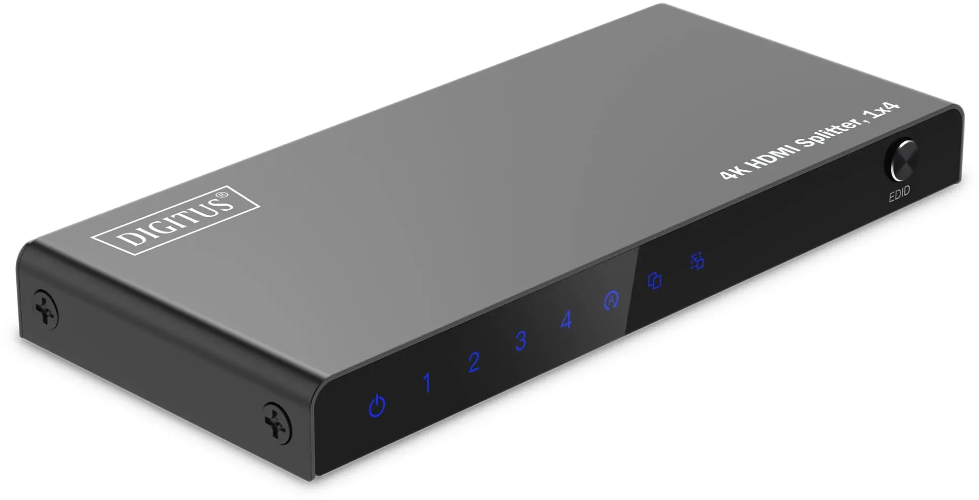 Auf Lager Versand durch AmazonDIGITUS DS-55337 HDMI Splitter 1x4 ? Eingang: 1-Port Ausgang: 4-Port ? UHD 4K 60 Hz HDTV: 3840 x 2160p ? HDCP 2.2 ? HDR, Deep Color, EDID-Umschalter, DTS, Dolby Digital, LPCM