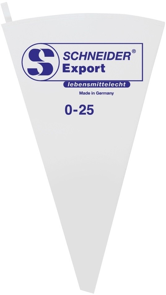 Esmeyer - EAN: 4028574003001 - Spritzbeutel EXPORT ++ lebensmittelecht ++ Baumwollgewebe mit starker Spezialbeschichtung ++ Längsnaht verschweißt, mit oberem Saum und Aufhänger ++ mit Tüllenverstärkung ++ mehrmals verwendbar ++ undurchlässig ++ - bei metro.de - aus Yadore Produktdaten ![]() Esmeyer 1 x SCHNEIDER Spritzbeutel, 0-25cm - Export 0 - 250 mm