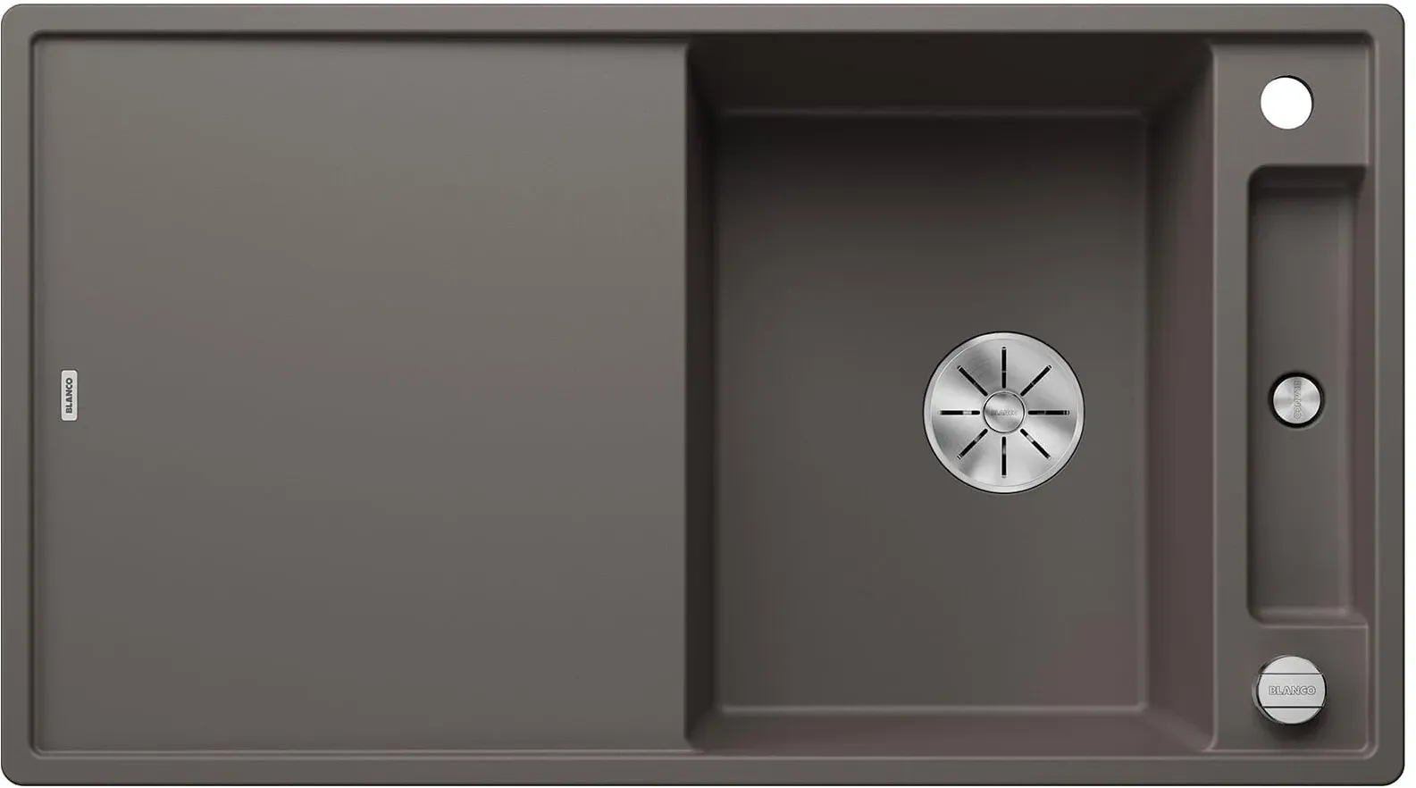 11 Händlerangebote bei billiger.de - Kategorie: Spülen - Blanco - Entdecken Sie die perfekte Kombination aus Stil und Funktionalität für Ihre Küche! Unser neuestes Becken, gefertigt aus hochwertigem SILGRANIT, bietet nicht nur ein ästhetisches Design, sondern auch eine praktische Lösung für Ihre täglichen Küchenbedürfnisse. Mit seiner durchdachten Konstruktion und den vielseitigen Features erleichtert dieses Produkt Ihren Küchenalltag erheblich. Lassen Sie sich von der Qualität und Innovation überzeugen, die jedes Detail dieses Beckens auszeichnet.Produktbeschreibung:EAN: 4020684786171Artikelnummer: 527039Farbe: softweißMaterial: SILGRANITAbmessungen:Artikelhöhe: 202 mmArtikelbreite: 510 mmArtikellänge: 915 mmBecken 1 innen Breite: 470 mmEinbauart:Flächenbündig: NeinUnterbau: NeinEinbau von oben: JaUnterbündig: NeinZwischengebaut: NeinUnterschrankmaß: 500 mmAusführung:mit Glasschneidbrettmit 3 1/2'' InFino-KorbventilAnordnung: reversibelHahnloch: NeinAbtropffläche: JaProduktgruppe: BeckenAllgemeine Merkmale:Reibungsloser, ergonomischer Arbeitsablauf auf zwei AchsenDesign geprägt von klaren Linien und besonders schmalem, niedrigem RandEnge Radien für maximale Ausnutzung von Oberfläche und VolumenMultifunktionsschale kann zur einfachen Vorbereitung von Lebensmitteln auch frei im Hauptbecken positioniert werdenVerschiebbares Glasschneidbrett zum direkten Verarbeiten in KochgeschirrHochwertige Ausstattung mit integrierter Ablauffernbedienung, verdecktem C-overflow und ... ![]() ![]() Blanco AXIA III 5 S