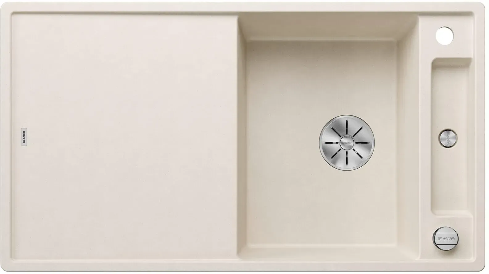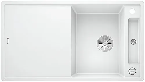 Auf Lager Versand durch AmazonBLANCO AXIA III 5 S | Granitspüle aus SILGRANIT weiß | Einbauart: Einbau von Oben | reversibel | mit Glasschneidbrett | für 50 cm breite Unterschränke | Verschiebbares Schneidbrett