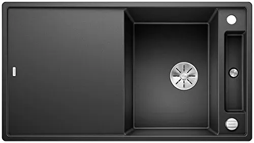 15 Händlerangebote bei billiger.de - Kategorie: Spülen - Blanco - Hochwertige Einbauspüle aus SILGRANIT PuraDur, d.h. besonders pflegeleicht, kratzfest, hitze- und säurebeständig, lichtecht und hygienisch für 50 cm breite Unterschränke - Außen-Abmessungen 915 x 510 mm / Ausschnitt 895 x 490 mm Besonders ergonomisch angeordnete Funktionsbereiche - mit geräumigem Spülbecken, kompakter glatter Abtropffläche, seitlichem Zusatzausguss und schmalem, flachen Rand Durchdacht bis ins Detail: mit verschiebbarem Schneidbrett, Ablaufsystem InFino, Ablauffernbedienung, elegant integriertem überlauf und engen Radien für komfortable Nutzung reversible Granitspüle, d. h. Tropffläche kann nach rechts oder links ausgerichtet werden; empfiehlt sich auch für die Vorfenstermontage - durch seitliche Platzierung der Küchenarmatur - GTIN:4020684679626 ![]() ![]() Blanco AXIA III 5 S