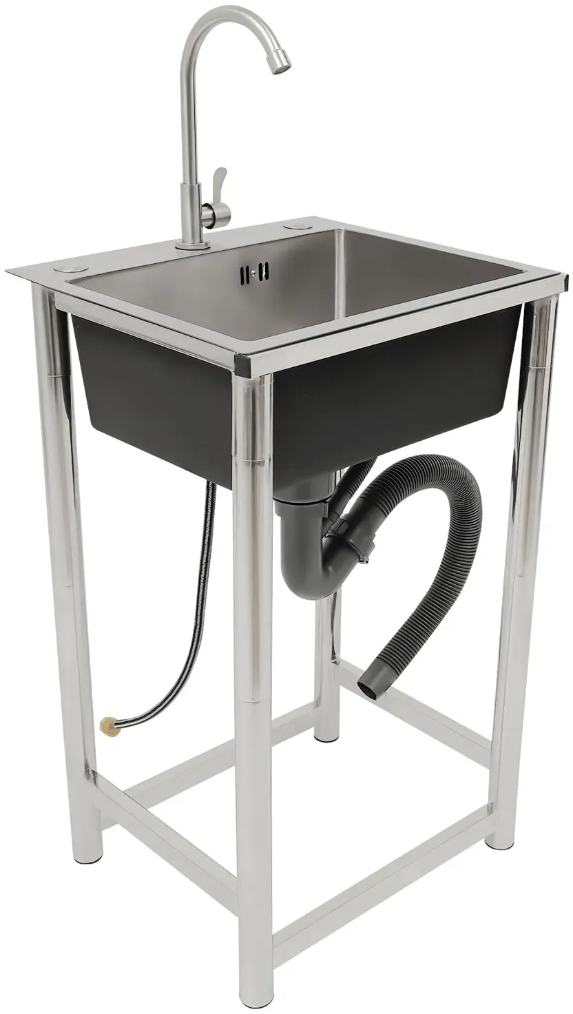 Kategorie: Spülen - aooungm - Rostfreie Edelstahl Spüle: Die Edelstahl Spültisch besteht aus hochwertigem, korrosionsbeständigem Edelstahl. Diese pflegeleicht Oberfläche bleibt auch nach intensiver Nutzung glatt und reinigungsfreundlich. Flexible DIY Montage: Die stabile Edelstahlhalterung ermöglicht unabhängige Installation. Der Spültisch lässt sich flexibel an jedem gewünschten Ort aufstellen, unabhängig von Schrankstrukturen. Großes Spülbecken: Das 16,54x14,57 Zoll mobiles Waschbecken bietet großzügigen Platz für Geschirr oder Wäsche. Die große Spüle spart Zeit durch effizientes Arbeiten. Praktische Ablagefläche: Die rostfreie Stange vorn und das hohle Untergestell bieten Stauraum. Der Spültisch hält Handtücher, Utensilien und Reinigungsmittel ordentlich griffbereit. Hohe Tragkraft Gestell: Robuste Rohre mit PVC-Muffen gewährleisten 132,28 Pfund Belastbarkeit. Das stabile Spülgestell trägt sicher Wasser und Reinigungsutensilien. Schnellentwässerung Abfluss: Der 4,33 Zoll Ablauf mit Gummidichtung verhindert Verstopfungen und Leckagen. Der Spültisch gewährleistet schnellen Wasserablauf für effiziente Reinigung. Einfach Reinigen R-Kanten: Die glatte R-Eck Form verhindert Schmutzansammlungen. Die Edelstahlspüle lässt sich mühelos mit Wasser reinigen und pflegen. - 44,62 Euro bei Amazon Marketplace Home Improvement - gefunden von billiger.de ![]() ![]() Edelstahl- Multifunktionswaschtisch, Mobile Spüle, Freistehende Spüle für den Außenbereich, 45x41x75cm Gewerbliche Küchenspüle für Outdoorküche, Gastro und Camping usw