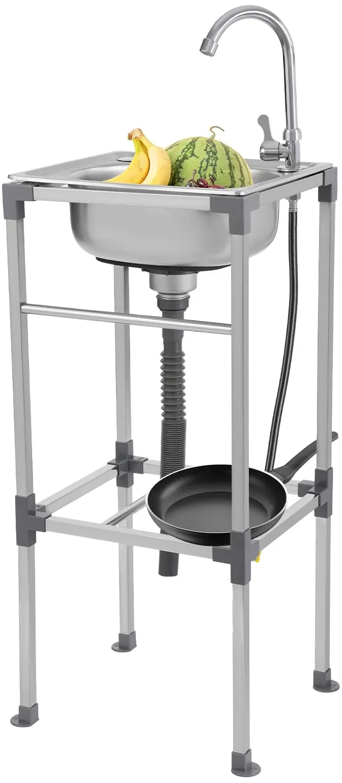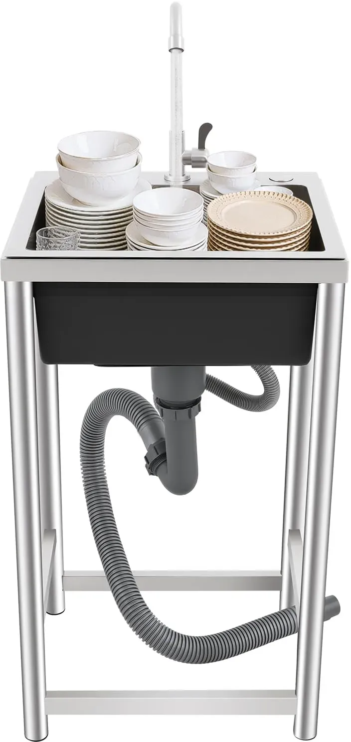 Kategorie: Spülen - tagtuell - Langlebig: Hochwertiger Edelstahl und exquisites Drahtziehverfahren machen diese Freistehende Spüle glänzend, schmutz- und ölabweisend, verschleißfest und kratzfest, nicht leicht zu rosten und zu verformen. Bequemes Waschen: Der um 360 drehbare Wasserhahn der gewerblichen Spüle mit einem einzigen Griff ermöglicht Ihnen ein bequemes und einfaches Wascherlebnis. Die reservierten Löcher für die Seifenlösung ermöglichen eine einfache Installation des Seifenspenders (nicht im Lieferumfang enthalten), wodurch eine hygienischere Reinigung erreicht wird. Großer Platz im Waschbecken: Die vergrößerte Spüle (15.75*11.81*6.7in) macht es möglich, dass die Restaurant Küchenspüle mehr Töpfe und Pfannen aufnehmen kann, während sie gleichzeitig das Spritzen mildert. Schnelles Entleeren: Das V-förmige Abflussrohr und das X-förmige Design mit umgekehrter Strömung geben dem Edelstahl Spültisch eine gute Abflussfunktion, die effektiv verhindern kann, dass sich Wasser ansammelt. Der Filterkorb kann große feste Rückstände im Spülbecken zurückhalten und das Rohr vor Verstopfung schützen. Innovatives Design: Die verdickte Anti-Kondensationsbeschichtung des Gewerblichen Spülbeckens verhindert effektiv Kondensation und Tropfenbildung. Das Dämpfungspad dämpft effektiv das Geräusch von fallendem Wasser. - 48,99 Euro bei Amazon Marketplace Home Improvement - gefunden von billiger.de ![]() ![]() armanyya Edelstahl- Multifunktionswaschtisch, Mobile Spüle, Freistehende Spüle für den Außenbereich, 45x41x75cm Gewerbliche Küchenspüle für Outdoorküche, Gastro und Camping usw