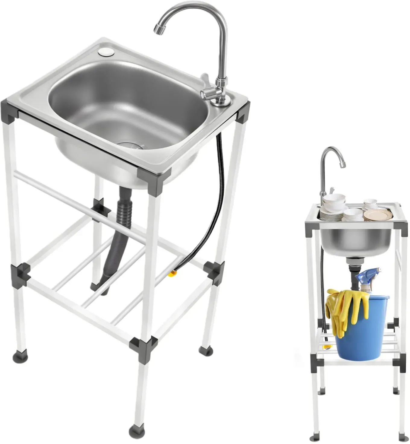 keine Angabe Sofort lieferbar, 3-5 Werktage in_stockGOJOY Mobile Spüle Küchenspüle, Freistehender Spülbecken, Multifunktions Freistehendes Edelstahl Einzelbecken Becken Waschbecken mit Wasserhahn für den