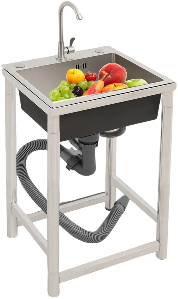 Kategorie: Spülen - fropij - GTIN:0754313320156 - Langlebig : Sie besteht hauptsächlich aus hochwertigem Edelstahl, Kunststoff und PVC, die Oberfläche ist mit einem gebürsteten Verfahren behandelt, das robust ist und eine gute Kratzfestigkeit, Korrosionsbeständigkeit und Rostbeständigkeit aufweist, um eine langfristige Nutzung zu gewährleisten. Großes Fassungsvermögen : Die große Edelstahlspüle (17.7*15.75*8.66in) bietet Ihnen einen geräumigen Platz, um mehr Utensilien unterzubringen und die Effizienz der Küchenarbeit zu verbessern. Durchdachtes Design : Das Design der Umleitungsleitung und des hochwertigen Filterkorbs kann das Wasser schnell ableiten, Wasseransammlungen verhindern und das Risiko einer Verstopfung verringern. Das optimierte Design des Abflusses und der V-förmigen Rohrleitung hat eine gute geruchs-, verstopfungs- und insektenverhindernde Wirkung und bietet Ihnen eine komfortable und saubere Reinigungsumgebung. Darüber hinaus kann die Antikondensationsbeschichtung Kondenswasser und Tropfen hinter der Outdoor Waschbecken wirksam verhindern und die Lebensdauer der Edelstahl Waschbecken verlängern. Benutzerfreundlich : Der Edelstahlrahmen, der bis zu 110 Pfund tragen kann, ermöglicht es Ihnen, dieses Freistehende Waschbecken Outdoor mit Seelenfrieden zu verwenden und gleichzeitig den Installationskomfort erheblich zu verbessern. Der um 360 drehbare Wasserhahn und der ergonomische Schalter erhöhen die Flexibilität und den Komfort der Nutzung. Geräuscharm : Die ... ![]() ![]() BJTDLLX Edelstahl Spültisch Freistehende Waschbecken mit Unterschrank, Küchenspüle Gewerbliche Spüle Outdoor Edelstahlspüle, mit Kalte Wasserhahn, Tragfähigkeit 132.28lbs (53x38x83cm)