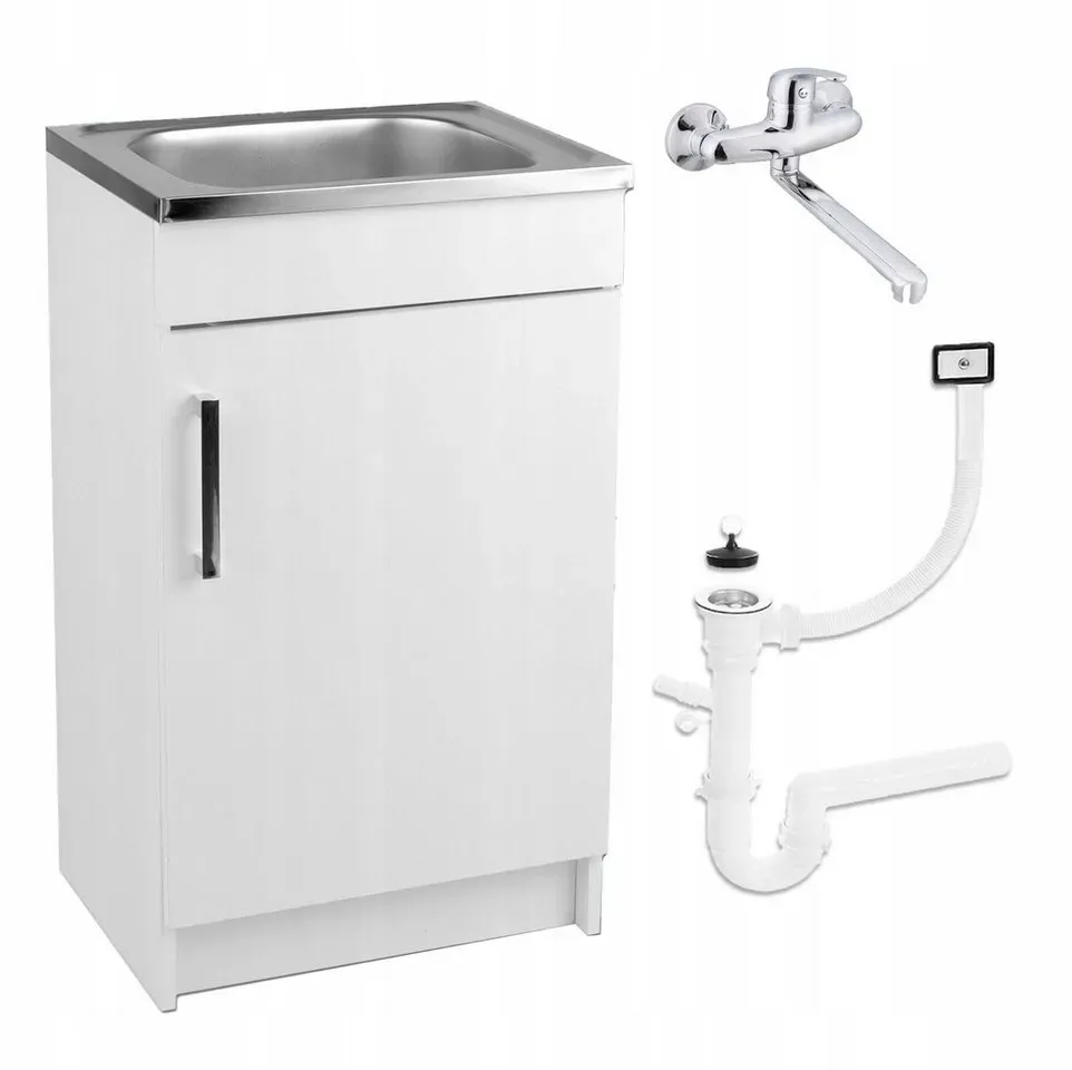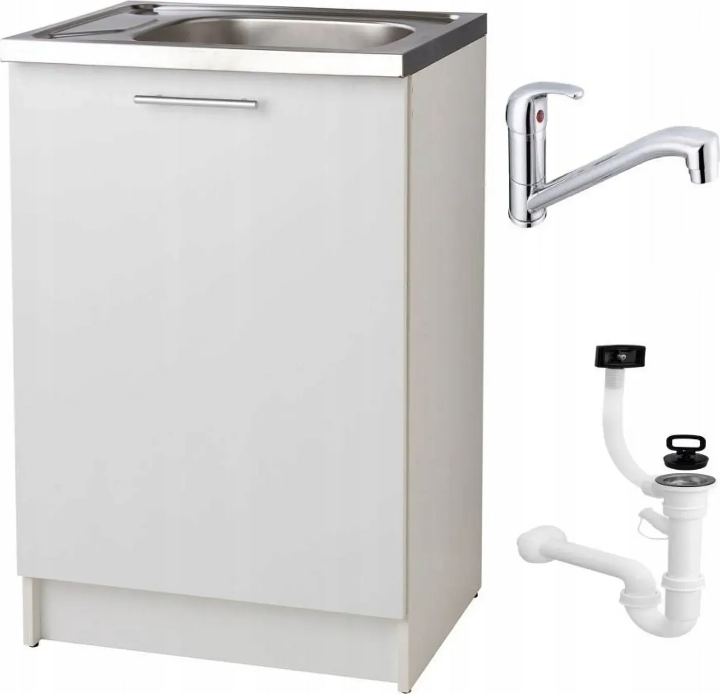 lieferbar-in 2-3 Werktagen bei dirSTAMAR Spülenschrank Küchenschrank 50cm Weiß Spüle 50x40 Wandarmatur Chrom Komplett Set Standschrank 40cm Tiefe Siphon Geschirrspüler Platzsparend Kompakt weiß