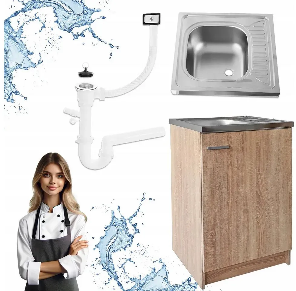 lieferbar-in 2-3 Werktagen bei dirSTAMAR Spülenschrank Küchenschrank 60cm Sonoma Eiche Slim Deante Spüle ohne Armatur Set Standschrank 50cm Tiefe Siphon Geschirrspüler Komplett Montagefertig braun