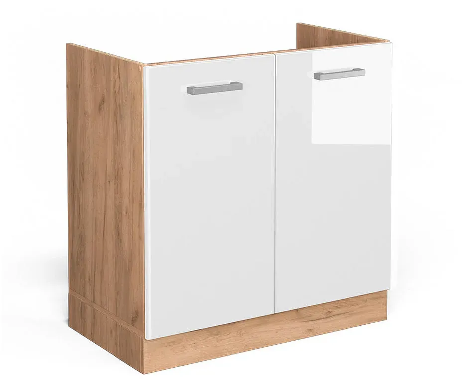 vidaXL - EAN: 8279633613686 - Spülenunterschrank Porto Hochglanz-Weiß 80x46x81,5 cm Dieser Unterschrank optimiert deinen Küchenraum und bietet ausreichend Stauraum für deine Sachen! Starkes und langlebiges Material: Holzwerkstoff ist ein langlebiges und robustes Material mit einer glatten Oberfläche, das gegen Feuchtigkeit, Verformung und Rissbildung beständig ist, wodurch es eine zuverlässigen Wahl für die Herstellung von Möbeln ist. Viel Stauraum: Der Küchenunterschrank bietet reichlich Stauraum für Schüssel, Teller, Töpfe und andere Küchengeräte. Praktische Türen: Hinter den Türen kannst du Küchengeräte verstauen, und so einen sauberen und aufgeräumten Raum genießen. Verstellbare Füße: Die Füße dieses Spülenunterschranks sind höhenverstellbar, um den Schrank an deine Kücheneinrichtung anzupassen. Pflegeleicht: Dank seiner glatten Oberfläche lässt sich der Küchenunterschrank mit einem feuchten Tuch leicht reinigen und erfordert wenig Pflege. Achtung: Um ein Umkippen zu vermeiden, sollte dieses Produkt mit der - bei manomano.de - aus Yadore Produktdaten ![]() ![]() Vicco Spülenunterschrank R-Line 80 cm ohne Arbeitsplatte