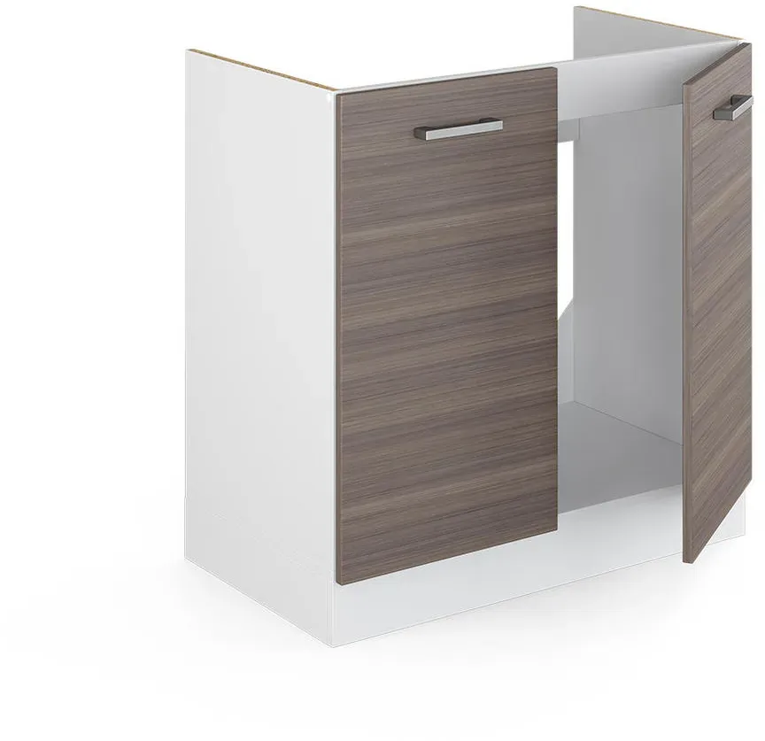 7 Händlerangebote bei billiger.de - Kategorie: Einbauküchen-Komponenten - Vicco - Unser stehende Küchenschrank 'R-Line' ist die optimale Wahl für jedes Haus. Mit einem universellen Design und hoher Benutzerfreundlichkeit bringt er Freude in jede Küche. Der Küchenunterschrank für die Spüle ist modular und umstellbar. Zusätzliche Module können hinzugefügt werden und die Füße sind höhenverstellbar. MAßE: Der Spülenschrank hat eine Breite von 80 cm, eine Höhe von 81,6 cm und eine Tiefe von 46 cm. Alle detaillierten Größen sind auf den Fotos angegeben. Material: Das Küchenmöbel besteht aus pflegeleichter Spanplatte 16 mm, mit einer Melaminharzbeschichtung Lieferumfang: Spülenunterschrank als Bausatz (Hinweis: Dekoration nicht im Lieferumfang enthalten), Montageanleitung, Montagematerial - GTIN:4066731229970 ![]() Spülenunterschrank R-Line, Beton, 80 cm ohne Arbeitsplatte, Vicco