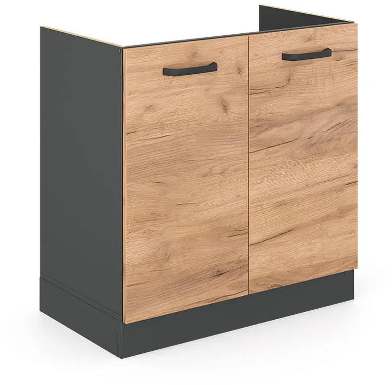 8 Händlerangebote bei billiger.de - Kategorie: Einbauküchen-Komponenten - Vicco - Unser stehende Küchenschrank 'R-Line' ist die optimale Wahl für jedes Haus. Mit einem universellen Design und hoher Benutzerfreundlichkeit bringt er Freude in jede Küche.Der Küchenunterschrank für die Spüle ist modular und umstellbar. Zusätzliche Module können hinzugefügt werden und die Füße sind höhenverstellbar.MAßE: Der Spülenschrank hat eine Breite von 80 cm, eine Höhe von 81,6 cm und eine Tiefe von 46 cm. Alle detaillierten Größen sind auf den Fotos angegeben.MATERIAL: Das Küchenmöbel besteht aus pflegeleichter Spanplatte 16 mm, mit einer MelaminharzbeschichtungLIEFERUMFANG: Spülenunterschrank als Bausatz (Hinweis: Dekoration nicht im Lieferumfang enthalten), Montageanleitung, Montagematerial Der R-Line Spülenunterschrank ist die Komplettlösung für Ihre Küche. Dieser Küchenunterschrank ist speziell für Ihre Spüle konzipiert und sorgt somit für eine perfekte Integration in Ihre Küche. Das Modul kann nach Belieben umgestellt werden und zusätzliche Module können bezogen werden, um Ihre individuellen Bedürfnisse zu erfüllen. Die höhenverstellbaren Füße geben Ihnen die Flexibilität, den Schrank an Ihre Küchenhöhe anzupassen. Dieser Küchenschrank ist ein unverzichtbares Möbelstück in jeder Küche und bietet neben der praktischen Funktion des Spülens auch die Möglichkeit, Ihre Küchenutensilien bequem zu verstauen. Machen Sie Ihre Küche zu einem Ort, an dem Sie gerne Zeit verbringen und Ihre ... ![]() Spülenunterschrank Kalmar Altholz-Optik 80x46x81,5 cm - Vidaxl