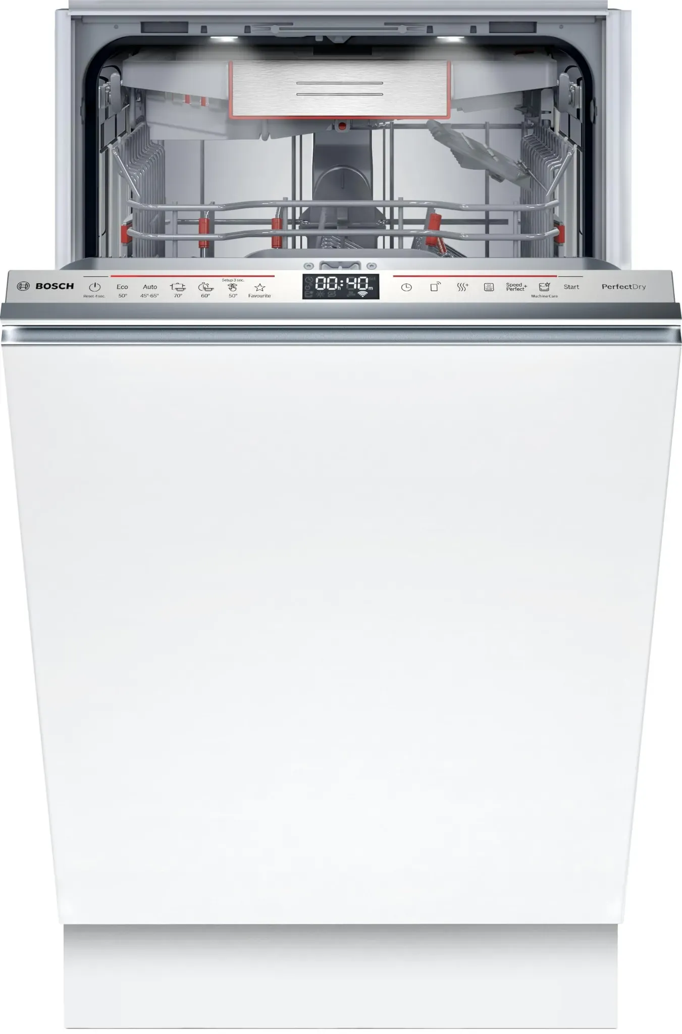 18 Händlerangebote bei billiger.de - EEK: B - Kategorie: Geschirrspüler - Bosch - EU-Stecker.Bosch Serie 6 SPV6YMX08E.Geräteplatzierung: Vollständig integriert, Produktgröße: Slimline (45 cm), Farbe des Bedienfelds: Edelstahl.Anzahl Maßgedecke: 10 Maßgedecke, Geräuschemissionsklasse: B, Geräuschpegel: 43 dB.Fußverstellung: 6 cm, Unterstützte Apps: Bosch Home Connect.Energieeffizienzklasse: B, Wasserverbrauch pro Zyklus: 8.5 L, Energieverbrauch pro 100 Zyklen: 51 kWh.Breite: 448 mm, Tiefe: 550 mm, Höhe: 815 mm. - GTIN:4242005371259 ![]() ![]() Bosch Einbaugeschirrspüler SPV6YMX08E