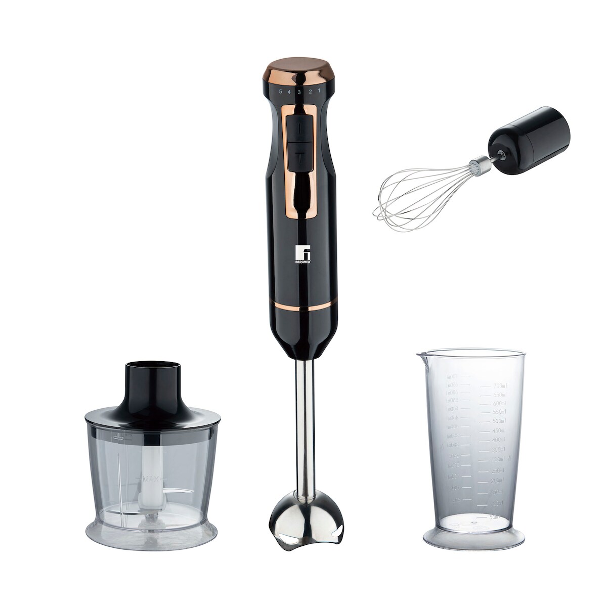 Kategorie: Mixer - Adler - GTIN:5903887800051 - Der Stabmixer AD 4620 ist eine ausgezeichnete Wahl für Menschen, die eine einfache Möglichkeit schätzen, gesunde Lebensmittel in kurzer Zeit zuzubereiten. Das Gerät kann gleichzeitig als traditioneller Stabmixer und als Mixer mit Zerkleinerer verwendet werden. Der Mixer ist mit einem Zerkleinerungsbehälter ausgestattet: 450 ml, einem Messbehälter: 750 ml und einem Mixeraufsatz aus Edelstahl. Darüber hinaus funktioniert der Mixer in einer traditionellen Küche und ermöglicht es Ihnen, alle Arten von Mousses, Cremesuppen, Pfannkuchenteig und andere Gerichte, die eine ähnliche Konsistenz erfordern, zu pürieren und leicht zuzubereiten. - 25,46 Euro bei Okluge - gefunden von billiger.de Mit 1000W und 5 Geschwindigkeitsstufen inklusive Turbofunktion ist dieses Set für 26.99 Euro sehr leistungsstark für den Preis. ![]() BERGNER Copper IC - 3-in-1 Stabmixer, 1000 W, 5 Geschwindigkeitsstufen mit Turbofunktion, 500-ml-Zerkleinerer, 700-ml-Becher und Schneebesen