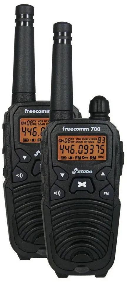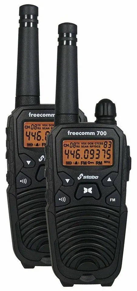 Stabo - EAN: 4010384207007 - PMR 446-Funkgerät mit hoher Reichweite und vielen Funktionen, geliefert im Komplett-Set bestehend aus zwei Funkgeräten, Akkus und Ladegerät! Das Stabo freecomm 700 lässt kaum Wünsche offen, denn es bietet neben der Long-Range-Technologie (bis 10 km Reichweite unter optimalen Bedingungen) vor allem einen beeindruckenden Funktionsumfang: Ein robustes Gehäuse mit IPX2-Schutz, 2 Pilotton-Verfahren (38 CTCSS- u. 83 DCS-Töne sorgen für eine ungestörte Kommunikation), Anrufsignalisierung per Vibrationsalarm u./o. Klingelsignal, VOX- Funktion (mit 3-stufig einstellbarer Empfindlichkeit), LED-Spotlicht (mit SOS-Funktion), Rufton (15 verschiedene Melodien), FM-Radio, Zweikanalüberwachung (Dual Watch), Rauchsperre, Kanalsuchlauf, Tastatursperre, Tastenquittungston, Batteriesparschaltung... Am beleuchteten Display lassen sich alle Einstellungen bequem ablesen. Lieferumfang: 2 x Stabo Freecom 700 Duo-Tischladeschale mit Netzteil 2 x Gürtelclips 8 x MiMH-Akkuzellen (1.2 V / 600 mAh) Bedienungsanleitung. - bei thalia.de - aus Yadore Produktdaten Dieses Duo-Set von OTTO ist eine gute Wahl für zwei Funkgeräte. ![]() ![]() Stabo Funkgerät freecomm 700 Duo 2 Funkgeräte