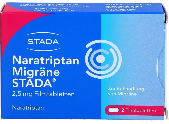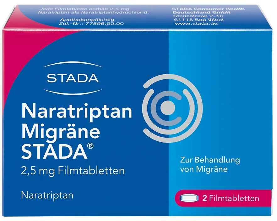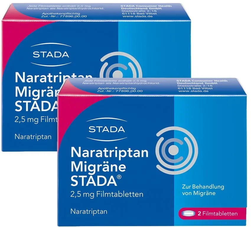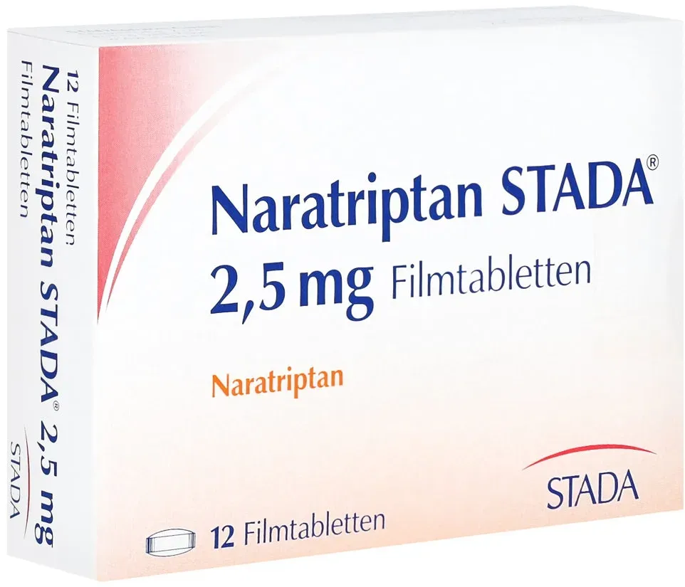 9,50 /St - Kategorie: Nahrungsergänzungsmittel - STADA - GTIN:4150800415941 - Naratriptan Migräne Stada 2,5mg 5x2 St. 2 St - rezeptfrei - von STADA Consumer Health Deutschland GmbH - Filmtabletten - 2 St - 18,99 Euro bei DocMorris Apotheke - gefunden von billiger.de Medpex.de bietet die größte Packung mit 12 Tabletten für 24,91 Euro an, was den besten Preis pro Tablette für Vielnutzer darstellt. ![]() ![]() Naratriptan Stada 2,5 mg Filmtabletten 12 St