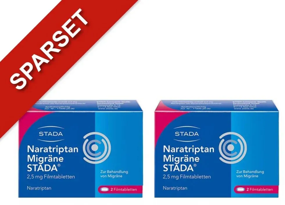 1.33 / 1 ct - Kategorie: Arzneimittel - STADA - GTIN:4150093919300 - PZN:09391930 - 09391930: STADA Consumer Health Deutschland GmbH - Naratriptan Migräne STADA 2,5 mg 2 St - 2,65 Euro bei Apotheker.com - gefunden von billiger.de Dieses Angebot bietet 2 Tabletten zu einem sehr attraktiven Preis. ![]() ![]()