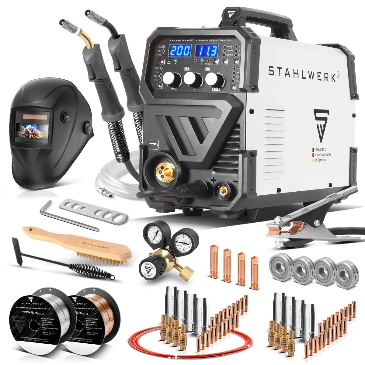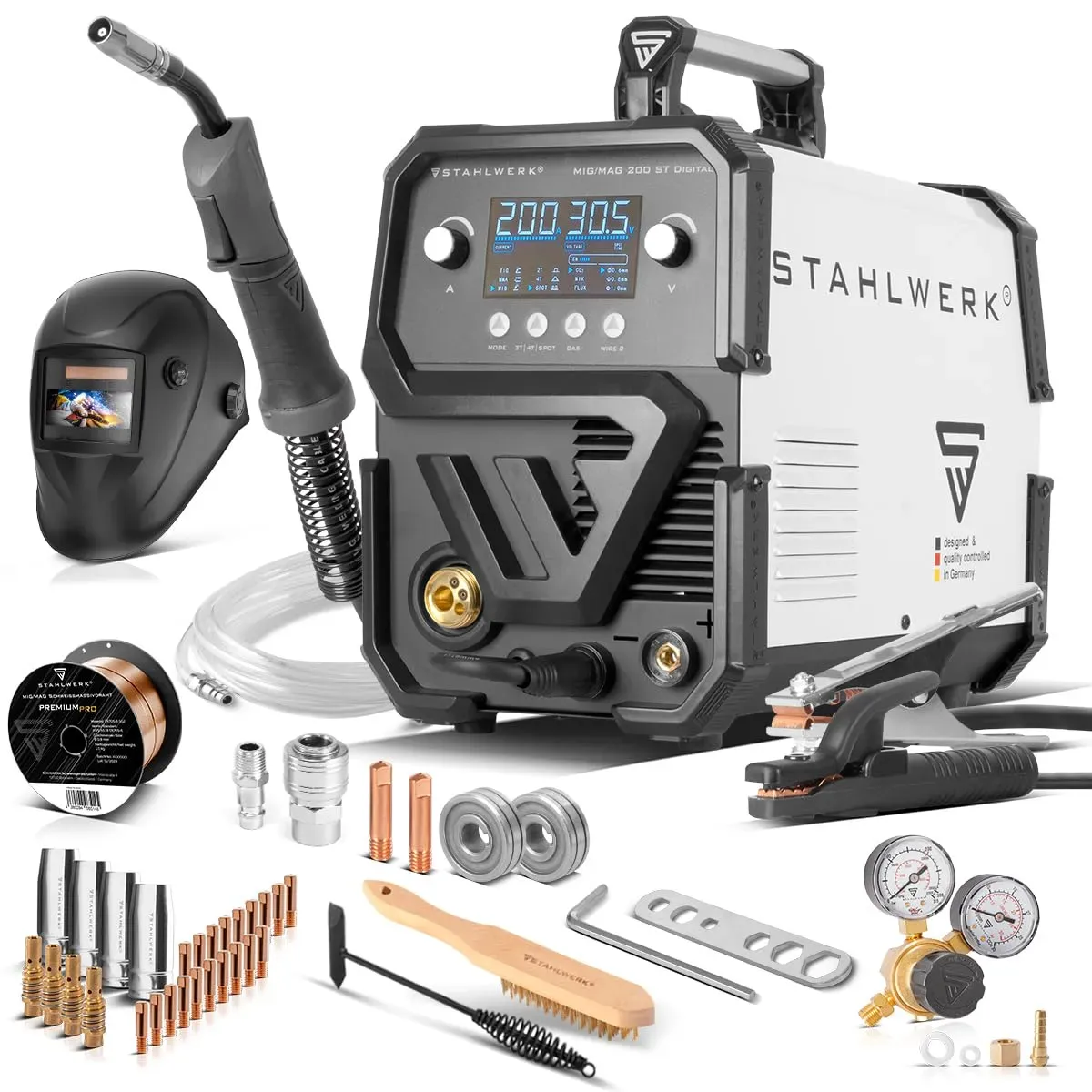 Verfügbarkeit: Auf Lager - Kategorie: Schweißgeräte - STAHLWERK - GTIN:4260294080232 - Leistungsstarkes AC/DC WIG & MMA Schweißgerät mit 200 A: Für Stahl, Edelstahl, Kupfer & Aluminium €“ dank moderner IGBT-Invertertechnologie kompakt, effizient und mit hoher Einschaltdauer Inklusive WP-26F Schlauchpaket mit Flexkopf (3 m): Ideal für flexibles Arbeiten, besonders im AC-Modus für präzises Aluminiumschweißen €“ komfortabel in jeder Position Vielfältige Profi-Funktionen für saubere Ergebnisse: HF-Zündung, 2T/4T-Modus, individuell einstellbarer Gasvor-/nachlauf, Stromabsenkung, Hotstart, Antistick sowie Smartkühlung & integrierter überhitzungsschutz Produkte Testen, Probeschweißen, Probeschneiden vor Ort - überzeugen Sie sich selbst von unserer hohen Qualität & einzigartigem Kundenservice 7-Jahre- gemäß § 6 bedingungen, weitere Informationen: auf Verkäufernamen und dort auf Allgemeine Geschäftsbedingungen und Hilfe klicken - 349,99 Euro bei Amazon Marketplace Home Improvement - gefunden von billiger.de Dieses MIG MAG 200 ST Digital Schweißgerät ist mit 447.99 Euro eine solide Wahl für Schutzgas-, FLUX- und MMA/ARC-Schweißen mit synergischem Drahtvorschub. ![]() ![]() STAHLWERK Schweißgerät MIG MAG 200 ST Digital - kompakt & leistungsstark, Inverter mit 200 A, Schutzgas-, FLUX- und MMA/ARC-Schweißen, Spot-Funktion, synergischer Drahtvorschub
