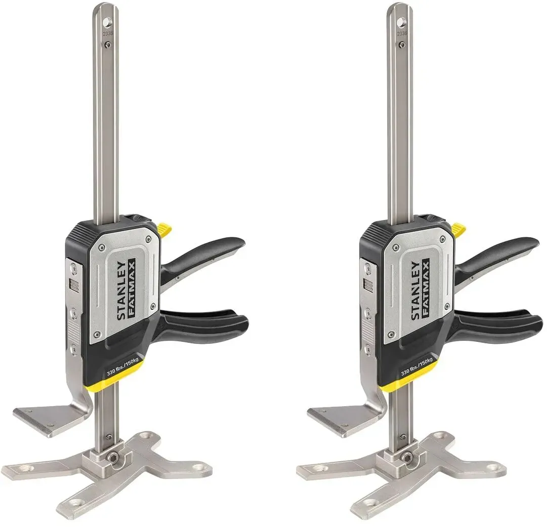 STANLEY - EAN: 3253561835520 - Universal Einhand-Montagewerkzeug zum Heben/Absenken, Spannen, Ausrichten und Halten. Intuitive Bedienung, schrittweises, leichtes Anheben und dosiertes Absenken ohne versehentliches Auslösen. 8 mm pro Hub und Möglichkeit zur Feinjustierung mit schrittweiser Absenkung der Hubplatte um 2,5 mm. Komfortable Pumpbewegung von oben nach unten - Hub wird durch Herunterdrücken des Pumphebels erzeugt, Möglichkeit zur Bedienung auch mit dem Fuß. Große Grundplatte für zusätzliche Stabilität und sicheren Stand, Bohrungen für zusätzliche Befestigungsmöglichkeit. Abgewinkelte Kante erleichtert das Unterschieben der Basis unter flache Gegenstände. Geschlossenes Metallgehäuse für höhere Haltbarkeit und Schutz der Mechanik vor Staub und Schmutz. Sicheres Arbeiten, keine freiliegenden beweglichen Teile, keine Gefahr des Einklemmens oder Verletzens. Im Gehäuse eingelassener Absenker - Sicherheitsfunktion verhindert die versehentliche Aktivierung der Vollfreigabe - bei voelkner.de - aus Yadore Produktdaten Ein beliebtes Doppelpack zu einem sehr guten Preis, ideal für umfangreichere Projekte oder den professionellen Einsatz. ![]() ![]() STANLEY FATMAX Einhand-Montagewerkzeug TradeLift Set FMHT83552-1 (Hebewerkzeug zum Halten, Heben, Stützen, Senken von schweren Objekten bis 150kg, präzise Feinjustierung, ideale helfende Hand) 2 Stück