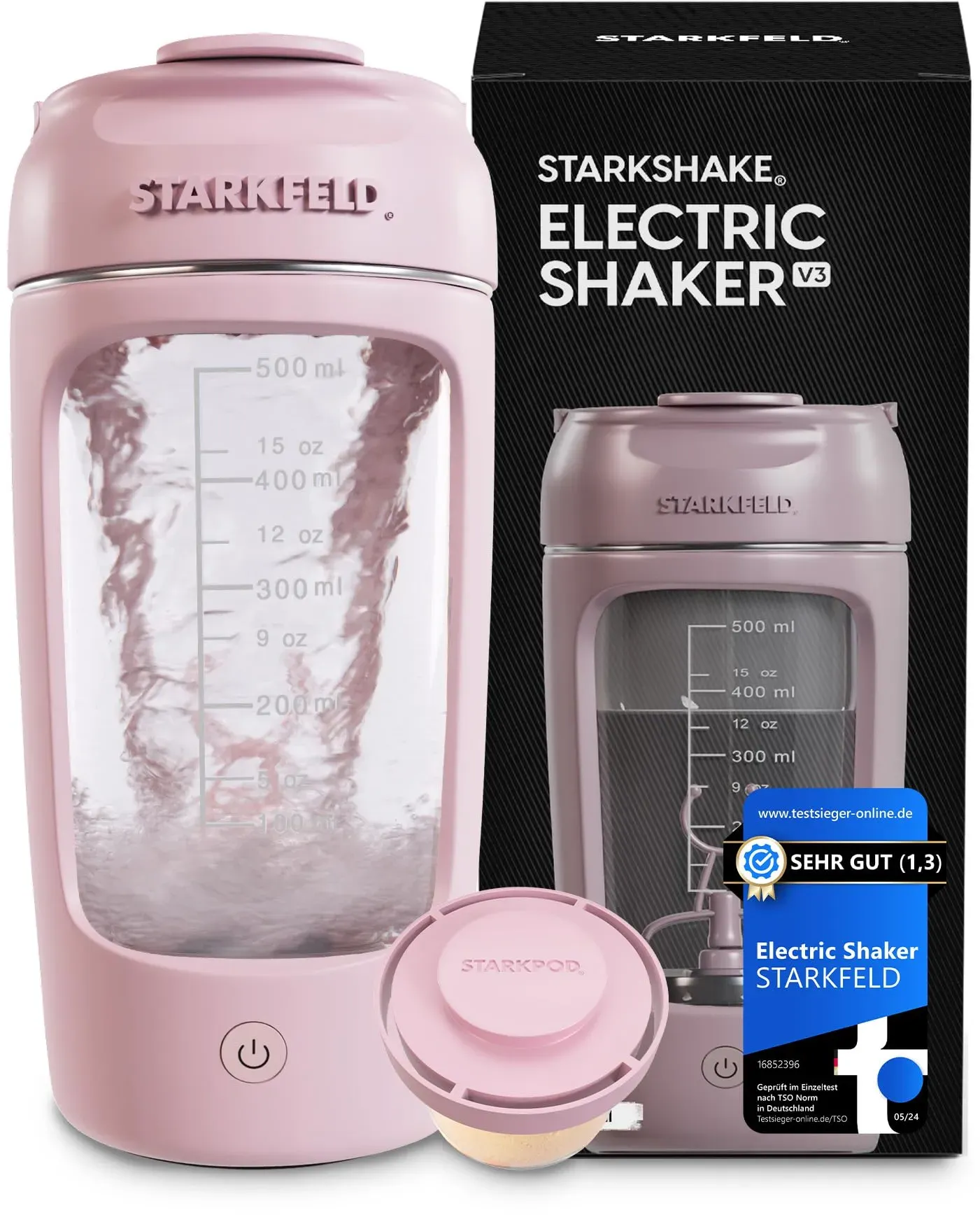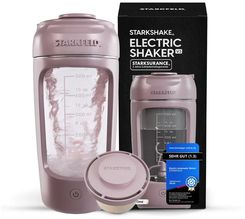 Zustand: Neu - Shaker Shaker für Eiweiß- & Sportgetränke - STARKFELD HMD Services GmbH - SF-001-V3 - - 🚀 Die SHAKER-REVOLUTION beginnt hier: Der STARKSHAKE V3 ist der letzte Shaker Elektrisch, den du jemals brauchst! Mixe perfekte Eiweißshakes und Proteinshakes in nur 15 Sekunden - klumpenfrei, leise und mühelos. ðŸ‹ï¸€™‚ï¸ STARKPOD REDESIGNED: Deine All-in-One-Lösung: Mixen und trinken in einem Gerät! Der innovative STARKPOD hält bis zu 60g Proteinpulver oder Supplements bereit - ideal für deinen MetaFlow Shake , Holy Shaker oder Designer Whey unterwegs. Das beste daran ? Selbst mit eingesetztem Supplementpod, kannst du den STARKSHAKE immrnoch als Trinkflasche verwenden. ðŸŽGERMAN ENGINEERING : Aus BPA-freiem Tritan gefertigt, ist der STARKSHAKE robust, nachhaltig und langlebig. Dein perfekter Milchshaker für Alltag und Fitness - und ein tolles Fitness Geschenk für Männer und Frauen das begeistert. 🔋 LEISTUNG, die hält, was sie verspricht: Über 60 Shakes pro Ladung - der leistungsstarke Akku mit USB-C macht€™s möglich. Sollte der STARKSHAKE doch mal leer sein, kannst du ihn ganz einfach in 10 Minuten für 10 weitere Shakes aufladen. Dein Shake Mixer Elektrisch ist immer einsatzbereit, egal ob im Gym, Büro oder auf Reisen. ðŸ›¡ï¸ STARKSURANCE: Zufriedenheit ist unser Versprechen: Mit n und erstklassigem deutschen Kundenservice bist du immer auf der sicheren Seite. Der STARKSHAKE ist der letzte Shaker, den du je kaufen wirst. 110% or nothing ! Das gilt ... ![]() ![]() starkfeld STARKSHAKE V3 ausgezeichnet als bester elektrischer Shaker vom F.A.Z.-Verlag (2025) | Elektrischer Protein Shaker für cremige Eiweiß Shakes | 7000 UPM | USB-C | 60+ Shakes | inkl. STARKPOD | ROSA