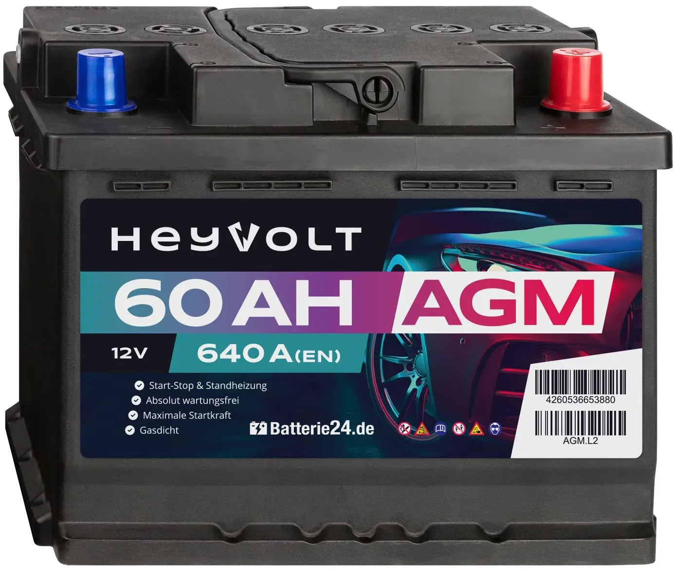 Verfügbarkeit: Auf Lager - Kategorie: Autobatterien - Batterie24.de - GTIN:4260536653880 - Die HeyVolt AGM Autobatterien vereinen höchste Startpower bei jeder Witterung mit absoluter Wartungsfreiheit. Sie sind bestens geeignet für Fahrzeuge mit vielen elektrischen Verbrauchern, wie einem Start-Stopp-System oder auch einer Standheizung. Die vielseitig einsetzbaren Batterien zeichnen sich durch eine deutlich höhere Lebensdauer aus. Blei-Säure- oder EFB-Batterien können problemlos durch eine AGM-Batterie ersetzt werden. HeyVolt steht für hochwertige Qualität zu einem günstigen Preis. Ausgezeichnete Kaltstartleistung €“ Hohe Startströme sorgen bei niedrigen Temperaturen im Winter für ein zuverlässiges Anlassen Ihres Fahrzeuges. Auch häufige Kurzstreckenfahrten stellen für Starterbatterien der HeyVolt AGM Serie kein Problem dar. Absolut wartungsfrei €“ HeyVolt Batterien werden gefüllt & geladen ausgeliefert, außerdem sind sie dicht verschlossen, was ein Auffüllen mit Säure oder destilliertem Wasser überflüssig macht. Die Batterien der HeyVolt-Serie können direkt eingebaut werden und sind somit sofort einsatzbereit. Lange Lebensdauer €“ Aufgrund moderner AGM-Technologie weisen HeyVolt Autobatterien im Vergleich zu herkömmlichen Blei-Säure Batterien eine geringere Selbstentladung und höhere Zyklenfestigkeit auf, was die Lebensdauer deutlich verlängert. Außerdem verfügen HeyVolt Batterien über ausgezeichnete Aufladeeigenschaften. Vielseitigkeit ... Die EXIDE EL604 EFB ist eine EFB-Batterie, die sich besonders für Fahrzeuge mit Start-Stopp-Systemen eignet und eine verbesserte Zyklenfestigkeit bietet. ![]() ![]() EXIDE Autobatterie 60Ah 12V 520A EFB EL604 EFB DIN/ISO D23 Starterbatterie