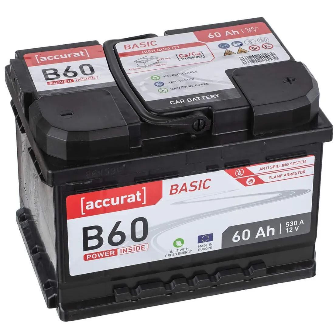 Verfügbarkeit: Auf Lager - Kategorie: Autobatterien - Exide - GTIN:3661024034630 - Kapazität: 60 Ah Kaltstartverstärker - 540 cca. - 69,89 Euro bei Amazon Marketplace Automotive - gefunden von billiger.de Die Accurat Basic B60 ist eine wartungsfreie Nassbatterie mit Ca-Technologie, die 30% mehr Startleistung verspricht. ![]() ![]() Accurat Basic B60 Autobatterie - 12V, 60Ah, 530A, zyklenfest, wartungsfrei, 30% mehr Startleistung, Ca-Technologie, Pluspol rechts- Starterbatterie, Nassbatterie, Blei-Säure Batterie