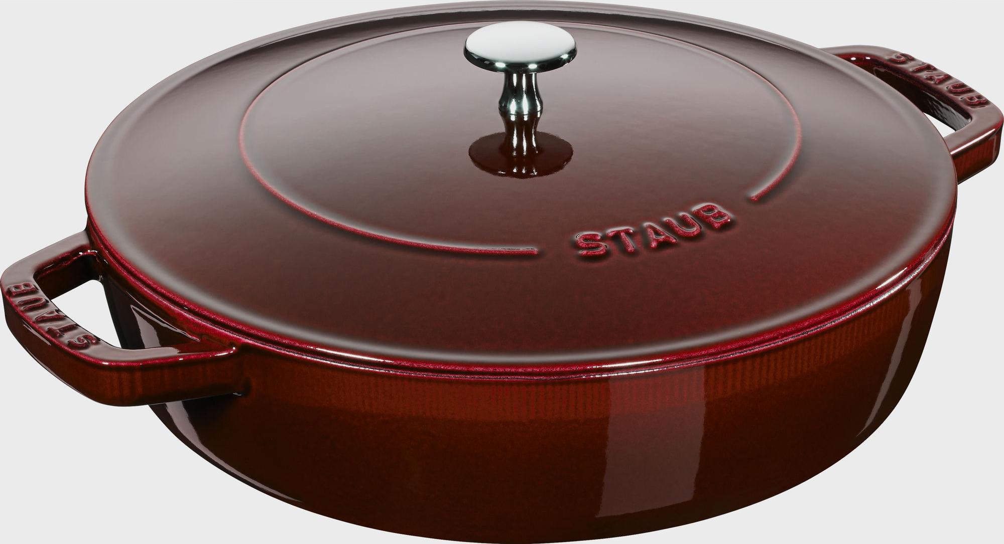 5 Händlerangebote bei billiger.de - Kategorie: Pfannen - Staub - Ideal zum anbraten und langsamen Garen von Fleisch, Fisch oder Gemüse Saftiges und zartes Kochergebnis durch die spezielle Tropfen Struktur im Deckel Die Schwarzmatte innenemaillierung eignet sich zum besonders krossen anbraten und ist besonders strapazierfähig Für alle Herdarten inkl. Induktion geeignet, auch im Backofen/Grill einsetzbar - GTIN:3272340019807 ![]() kaufland.d e Staub Schmorpfanne Chistera, 24 cm | rund | Gusseisen | Grenadine-Rot 405115120