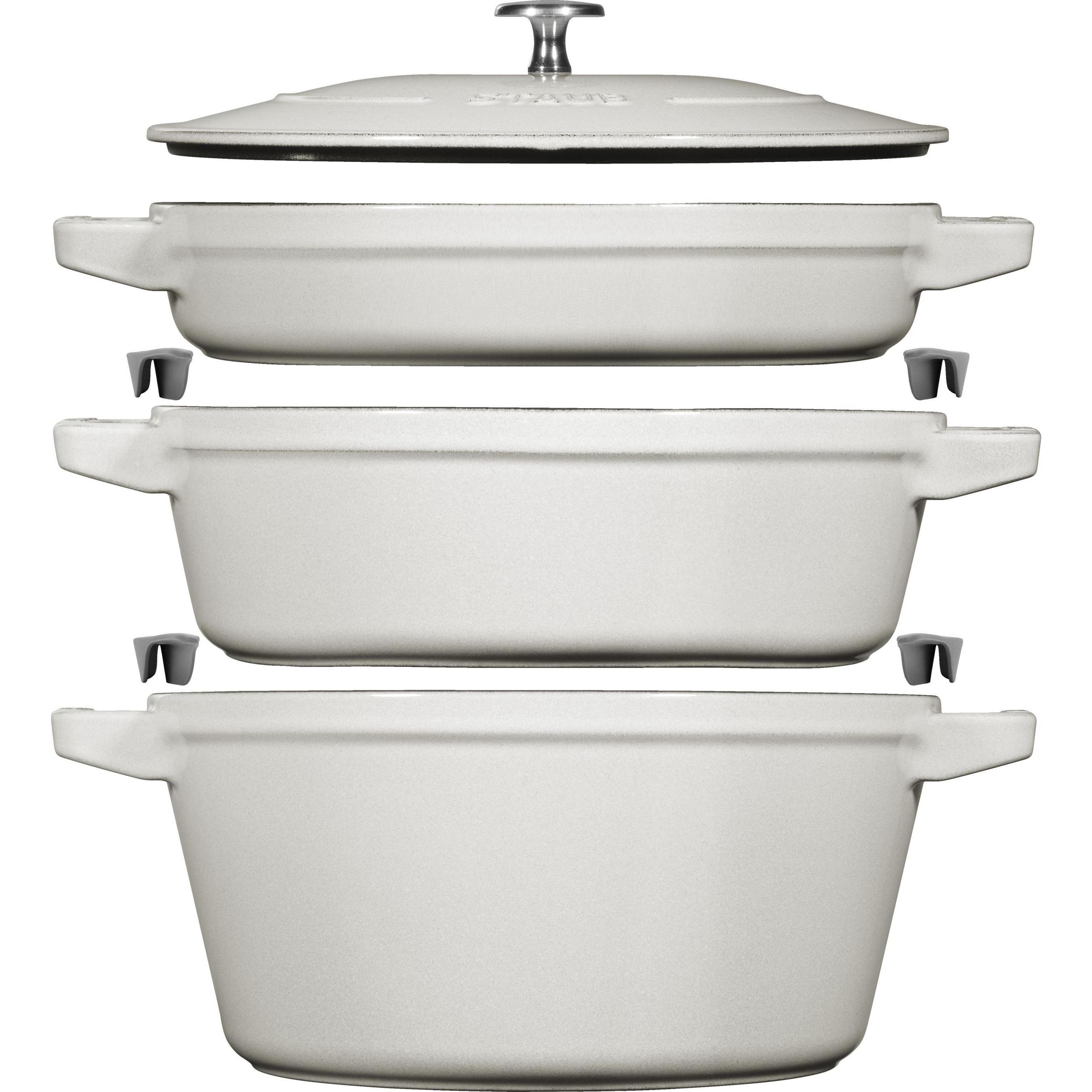 1 Händlerangebote bei billiger.de - Kategorie: Töpfe - Staub - Wenn Sie sich und Ihre Lieben schonen wollen, wird Ihnen der La Cocotte Topf von Staub diese Aufgabe erleichtern - die darin zubereiteten Speisen werden nicht nur lecker, sondern auch viel gesünder sein. Vorteile: Mit einem Fassungsvermögen von bis zu 3,8 Litern können Sie für eine große Anzahl von Personen kochen. Mit dem Dampfgareinsatz können Sie noch gesündere, diätetische Mahlzeiten zubereiten. Sie können beide Teile des Topfes gleichzeitig verwenden und so Zeit, Gas und Platz auf dem Herd sparen. Schicksal: Sie können im Topf schmackhafte und gesunde Gerichte zubereiten, z. B. aus der asiatischen Küche. Materialien: Er ist aus robustem, äußerst langlebigem Gusseisen gefertigt, das auch für Induktionsherde geeignet ist. Wissenswert... Der Topf kann bedenkenlos in den Backofen gestellt und in der Spülmaschine gereinigt werden. Sein Durchmesser beträgt 24 Zentimeter. - GTIN:3272340054396 Dieses Pfannenset bietet eine umfassende Ausstattung für anspruchsvolle Köche. ![]() ![]() Staub Cocotte (24 cm, Pfannenset + Topfset, Gusseisen) (40508-388-0)