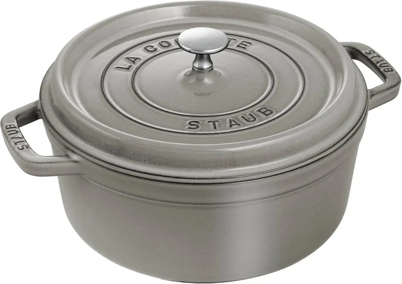 5 Händlerangebote bei billiger.de - Kategorie: Töpfe - Staub - Runder Bräter aus emailliertem Gusseisen mit 5 L Volumen, Ideal geeignet zum Anbraten, langsamen Garen und stilvollen Servieren von Fleisch, Fisch, Obst oder Gemüse Energiesparendes Kochen im Backofen und auf allen Herdarten einschließlich Induktion, Saftiges und zartes Ergebnis durch spezielle Tropfenstruktur im Deckel, Langanhaltende Temperaturspeicherung für kalte und warme Speisen Praktisches und geschmackvolles Design: Handliche, ergonomische Griffe, Bis zu 250°C hitzebeständiger Deckelknauf aus Metall, Lebendige Farben, Hervorgehobener Schriftzug Made in France €“ Einzigartige Handfertigung, Kratzfest und langlebig dank Innenemaillierung, Säureresistent, Geschmacksneutral, Einfache Handreinigung, Spülmaschinengeeignet Lieferumfang: 1x STAUB Bräter, Maße mit Deckel + Griffen (LxH): 32,7 x 16,7 cm, Durchmesser: 26 cm, Bodendurchmesser: 21,7 cm, Volumen: 5 L, Gewicht: 5,7 kg, Farbe: Graphitgrau, 1003923 - GTIN:3272341026187 Ein solides Angebot für eine graue Cocotte, die robust und langlebig ist. ![]() ![]() Staub Bräter Cocotte, Gusseisen (1-tlg), robust, langlebig, perfekte Hitzeverteilung, Aromaregen-Deckel grau 5,25 l | Ø 26 cm x 16,7 cm