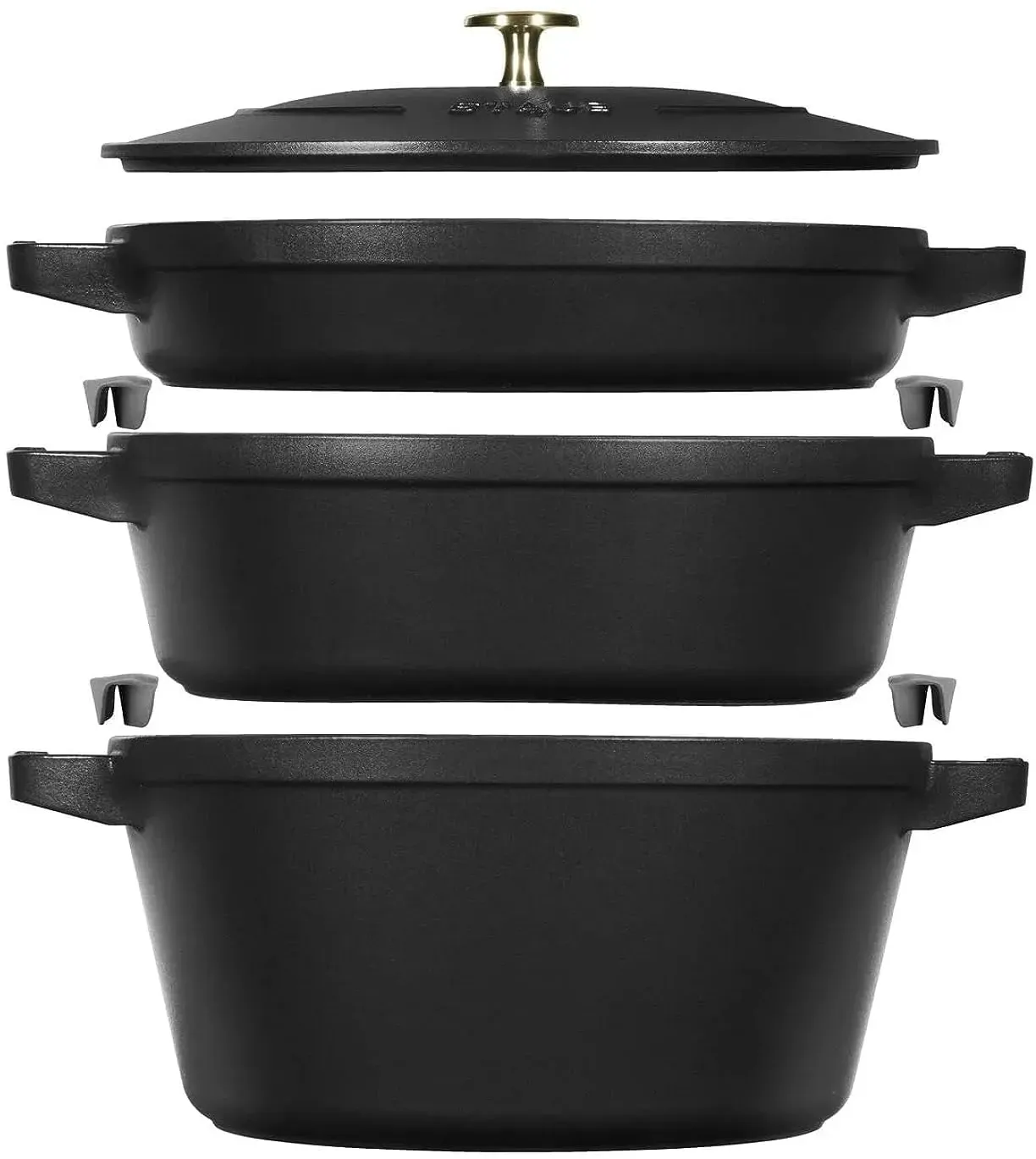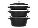 Verfügbarkeit: Auf Lager - Kategorie: Töpfe - Staub - GTIN:3272340054549 - Hochwertige Material Hochwertige Abmessungen Robustheit - 289,32 Euro bei Amazon Marketplace Kitchen - gefunden von billiger.de Dieses 3-teilige schwarze Set ist eine solide Investition für alle, die ein komplettes und langlebiges Kochtopfset suchen. ![]() ![]() STAUB La Cocotte Kochtopfset, 3-tlg rund Gusseisen Schwarz