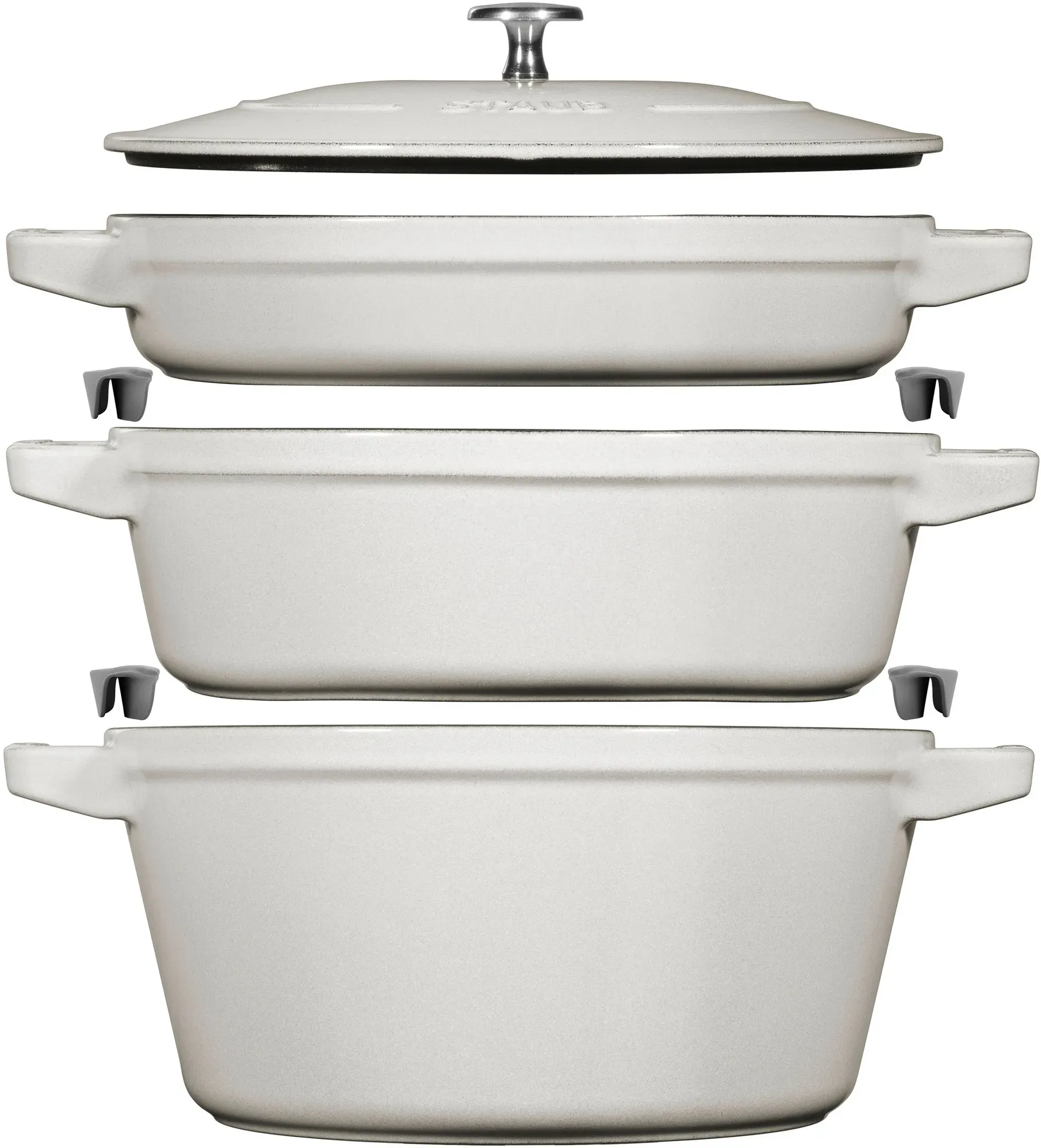 Staub - EAN: 3272340054549 - Staub Cocotte Kochtopfset 3-teilig Gusseisen rund 24 cm Kirschrot (3272340054549) - bei jacob.de - aus Yadore Produktdaten Dieses 3-teilige Set in der Farbe "Weisser Trüffel" ist eine exklusive und stilvolle Option für besondere Ansprüche. ![]() ![]() STAUB La Cocotte Kochtopfset, 3-tlg rund Gusseisen Weisser Trüffel